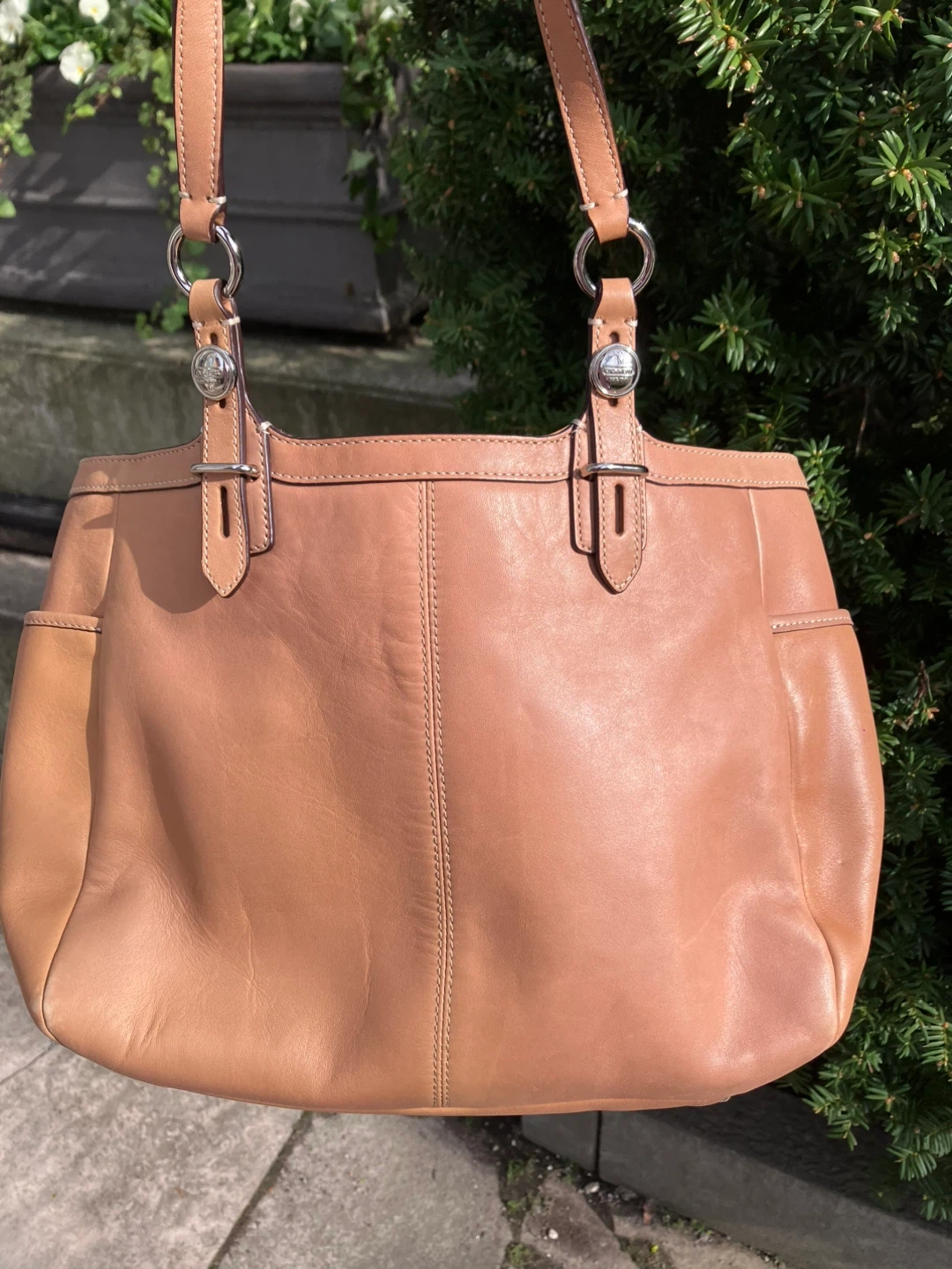 Selling a Coach leather tote bag. It's in great condition and ready for a new owner! The bag is a beautiful tan colour and made of high-quality leather. Perfect for everyday use or as a stylish accessory for any outfit