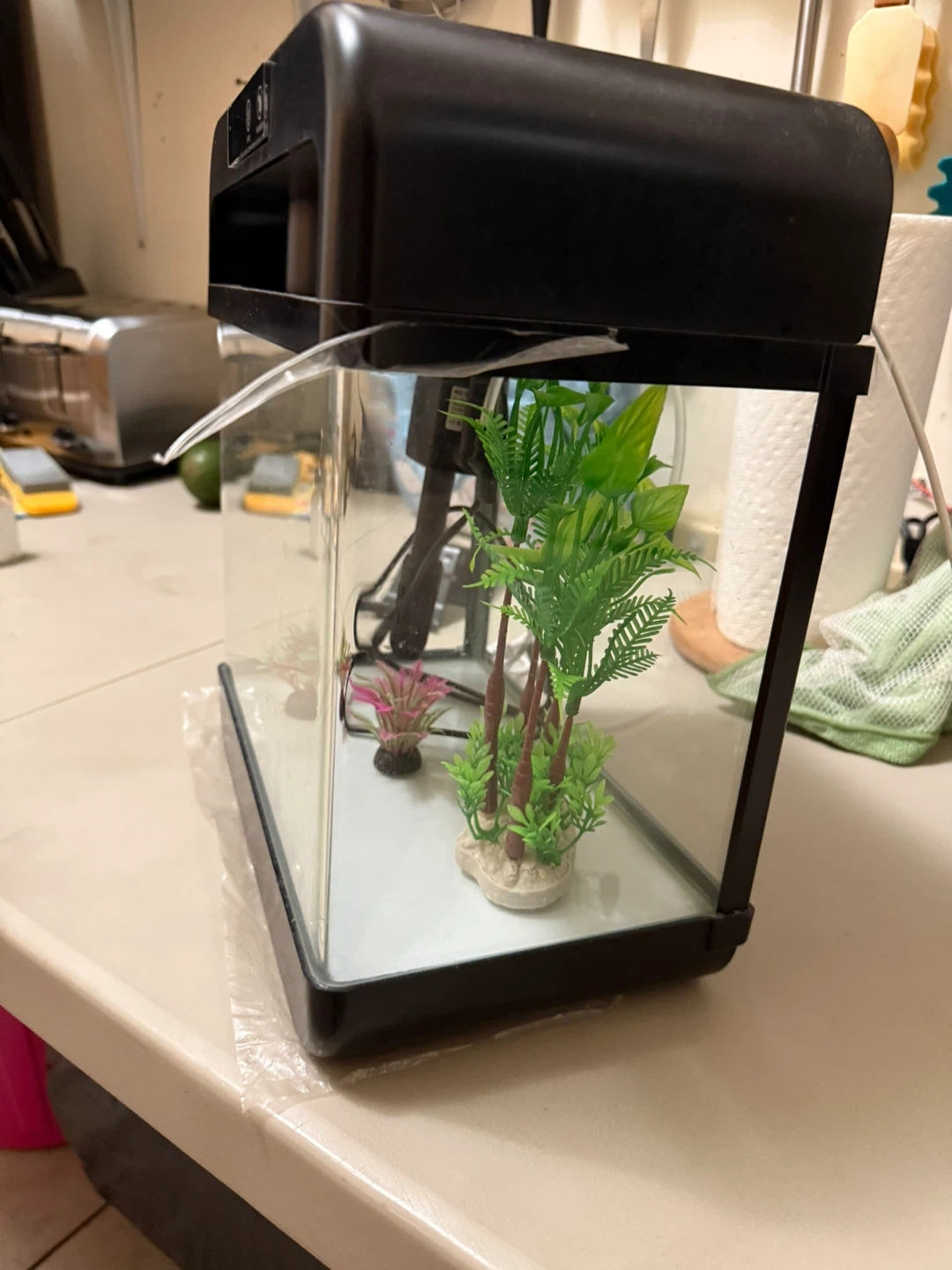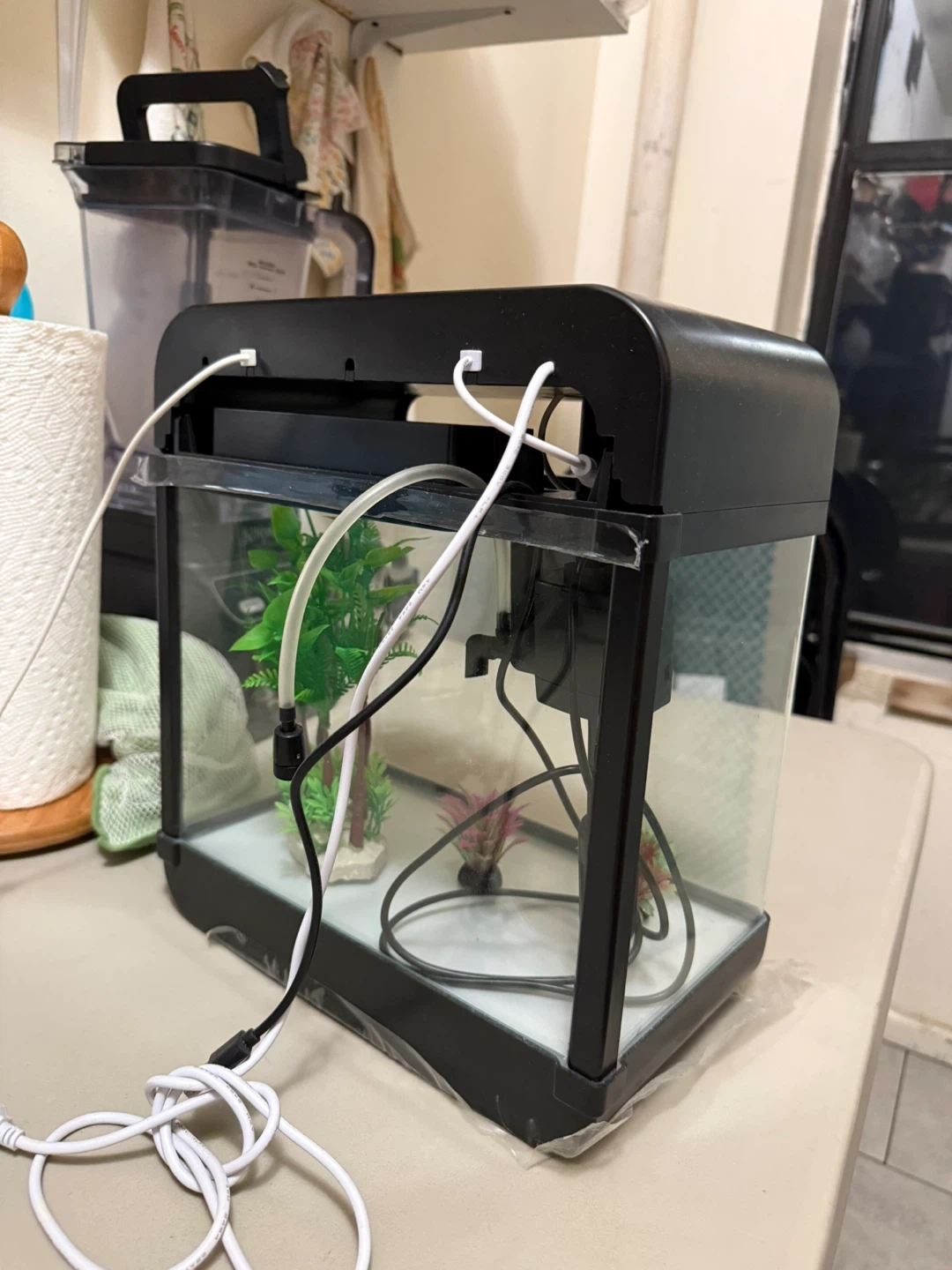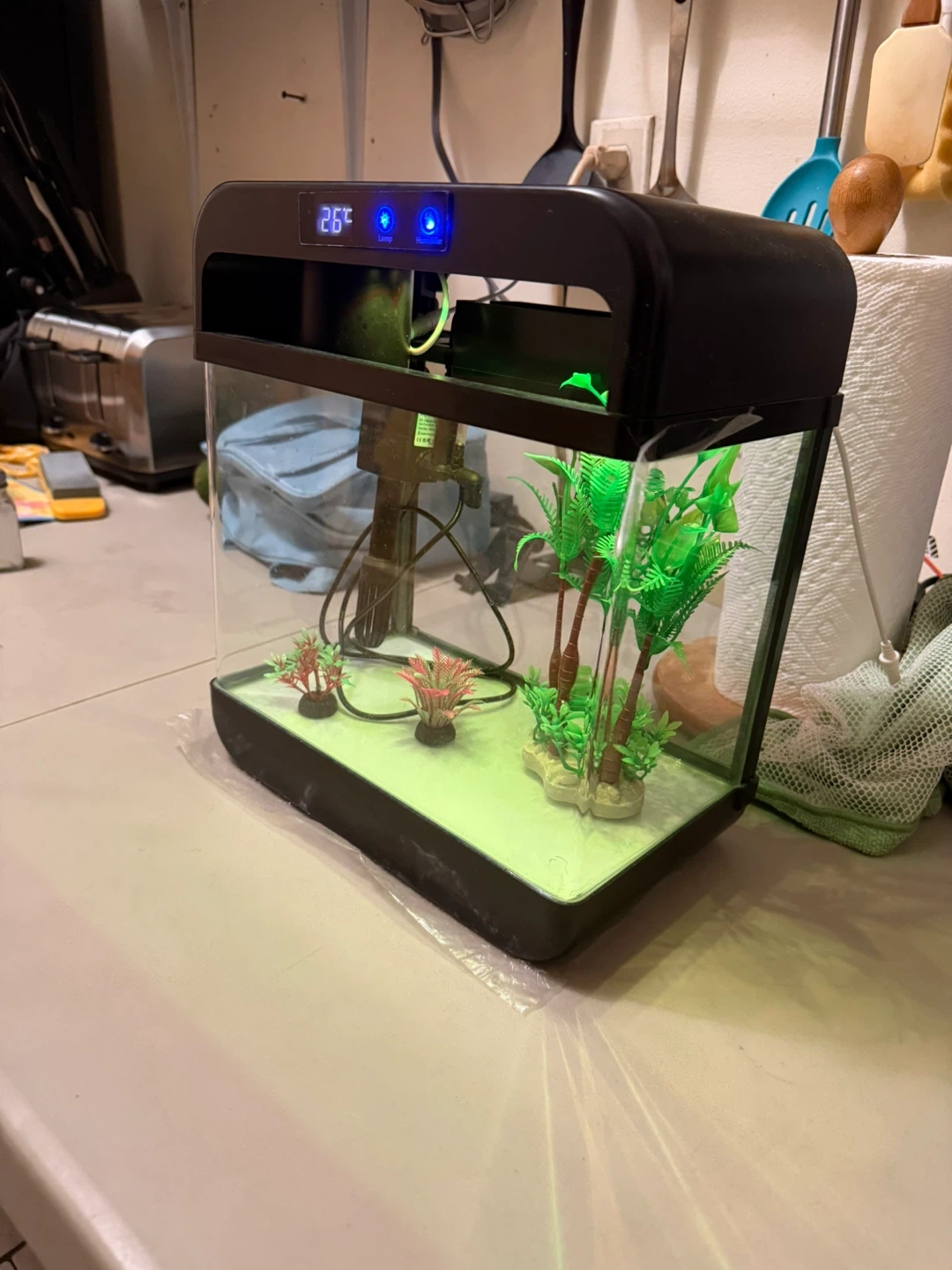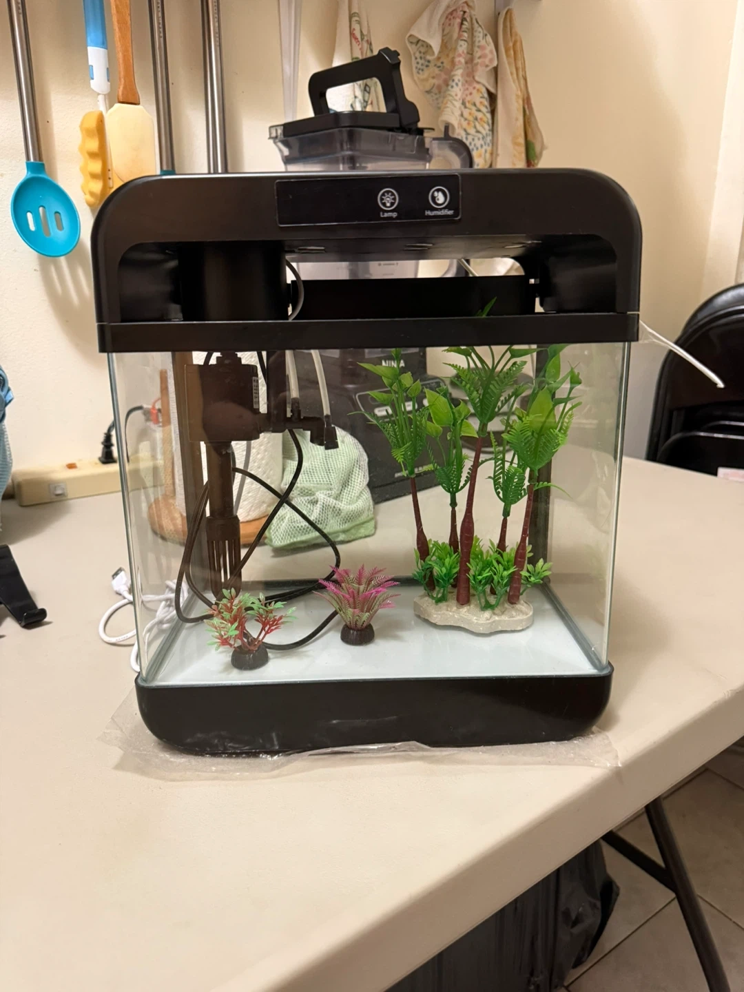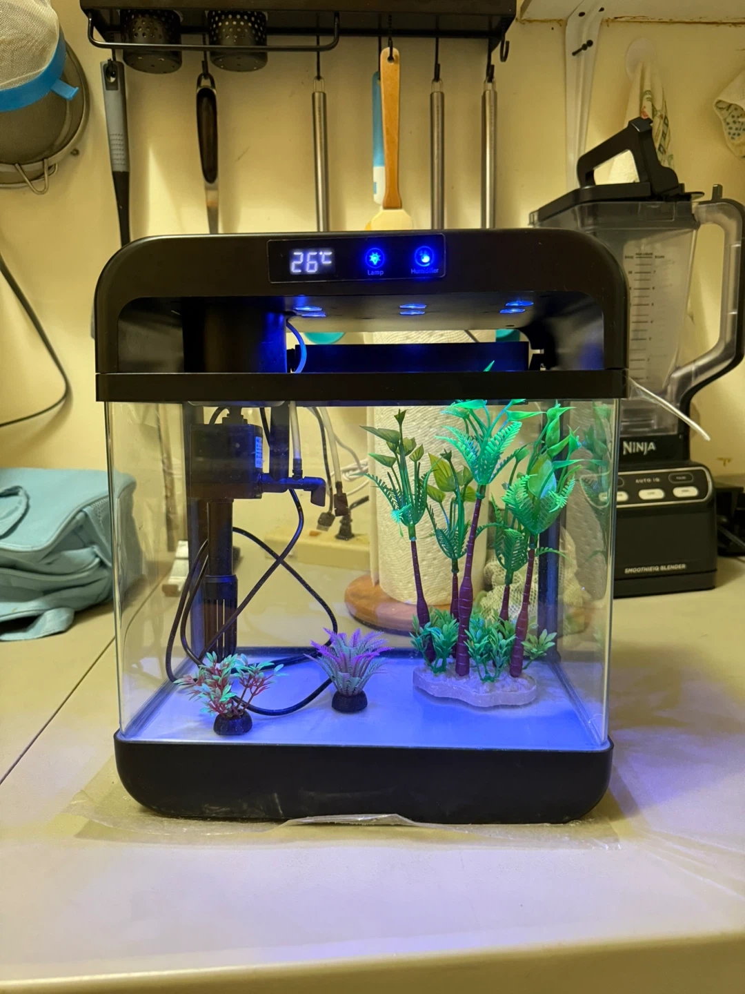 Small Black Aquarium with LED Lighting