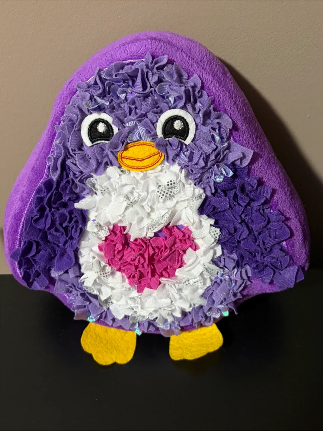A cute purple penguin plush toy with a heart on its belly! It's in great condition and ready for a new home. Perfect for kids or anyone who loves penguins. Pick up: midtown or downtown. Cash only🤗