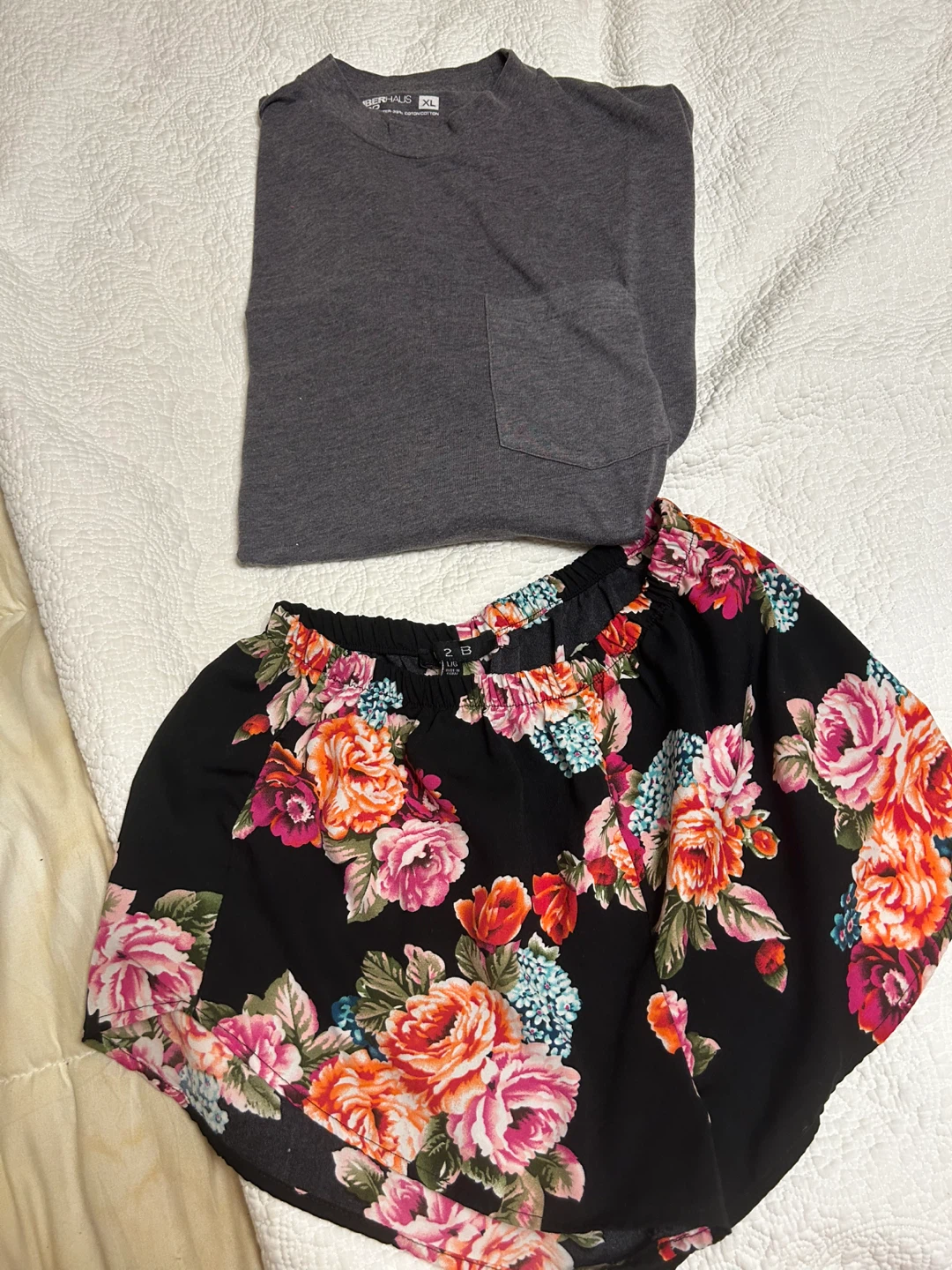 Eberhaus Grey Tee XL & Floral Shorts L #freecycle