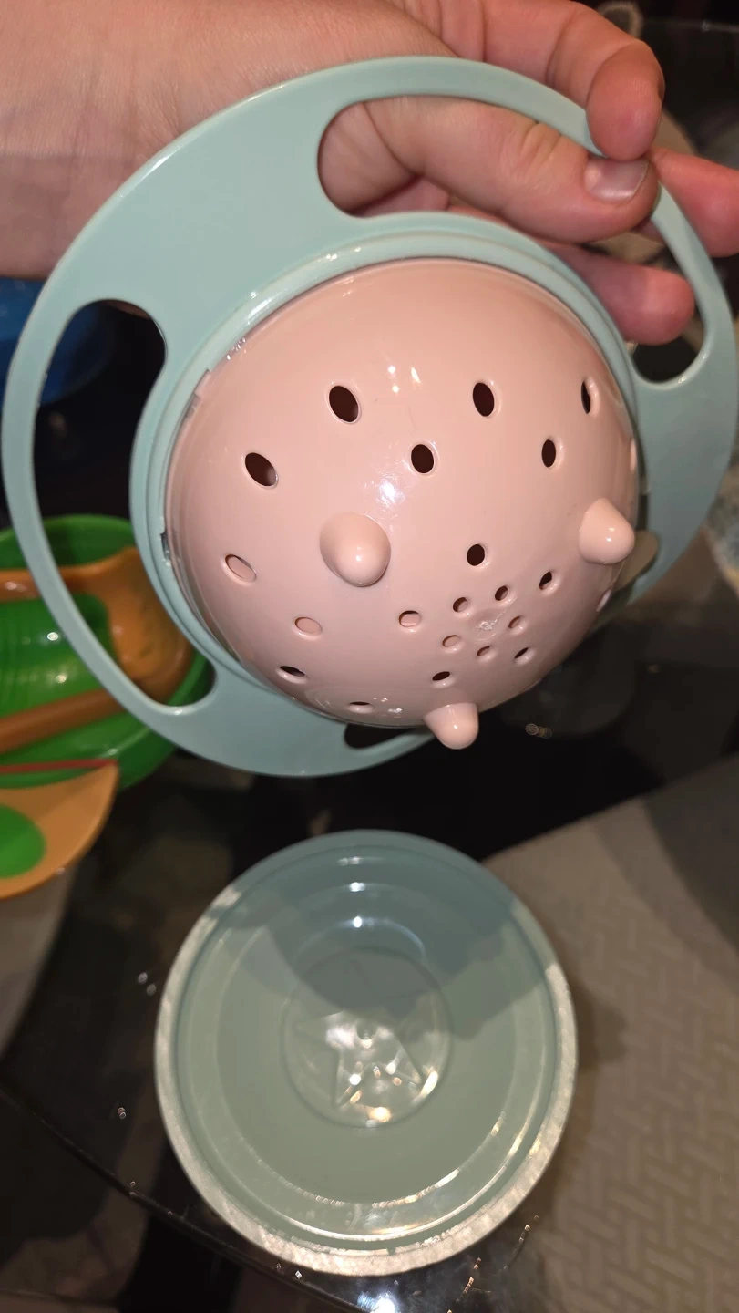 This is a fun and practical Gyro Bowl, designed to prevent spills! It rotates to keep the open side facing up, no matter how it's held. Great for kids learning to feed themselves! Adding the mashing set. Price for both.