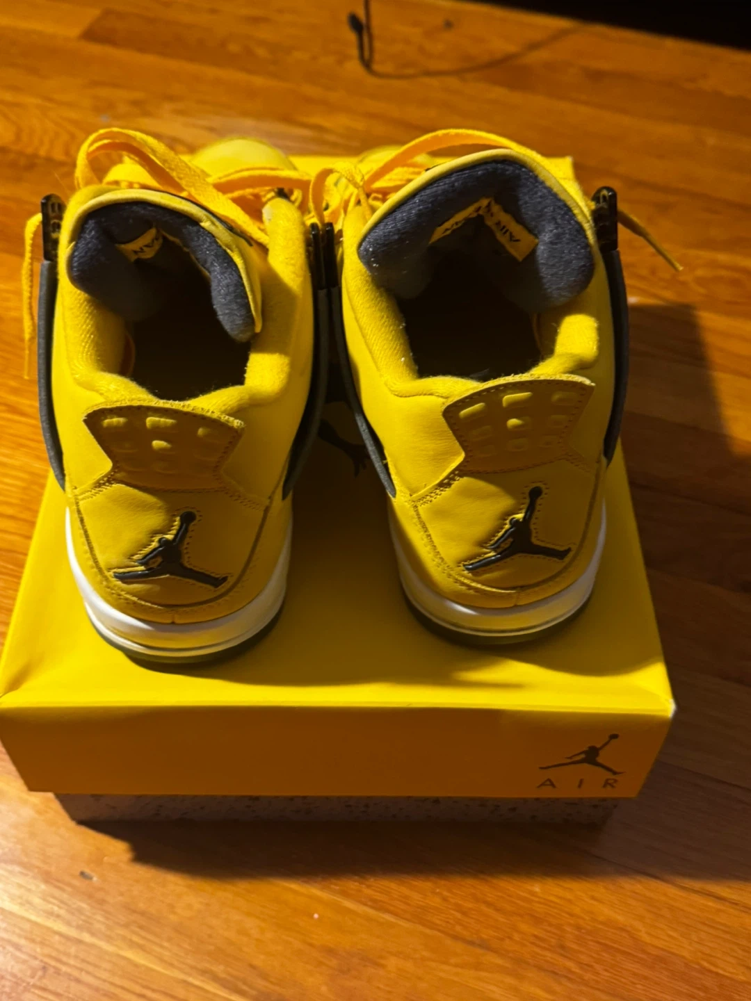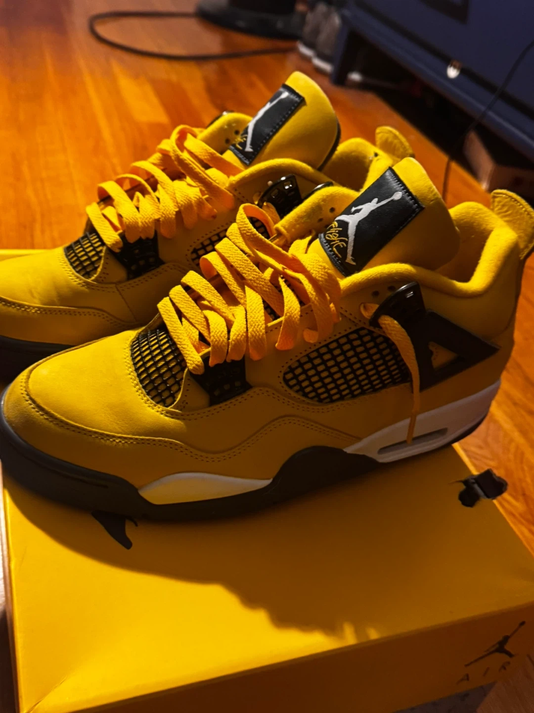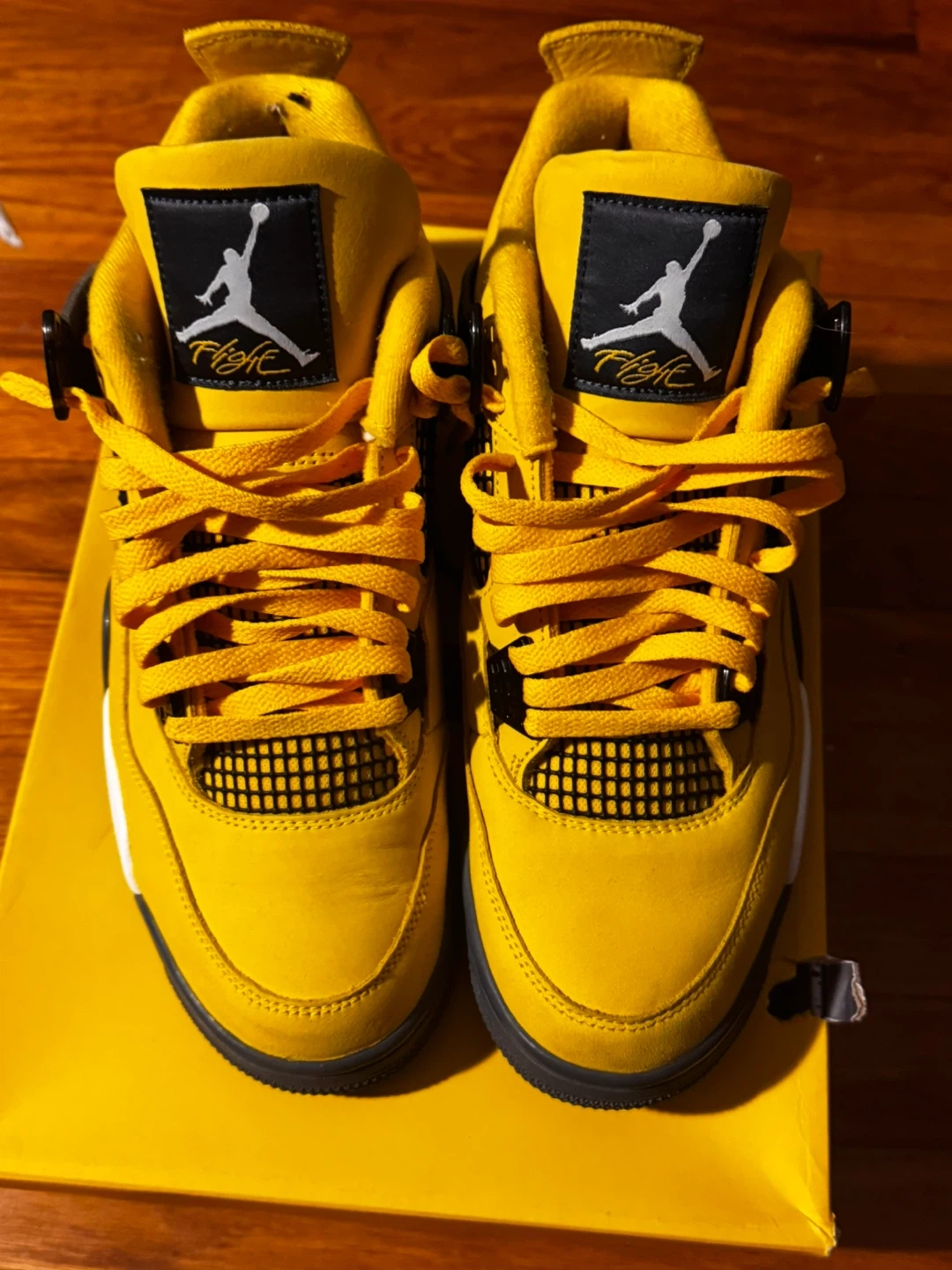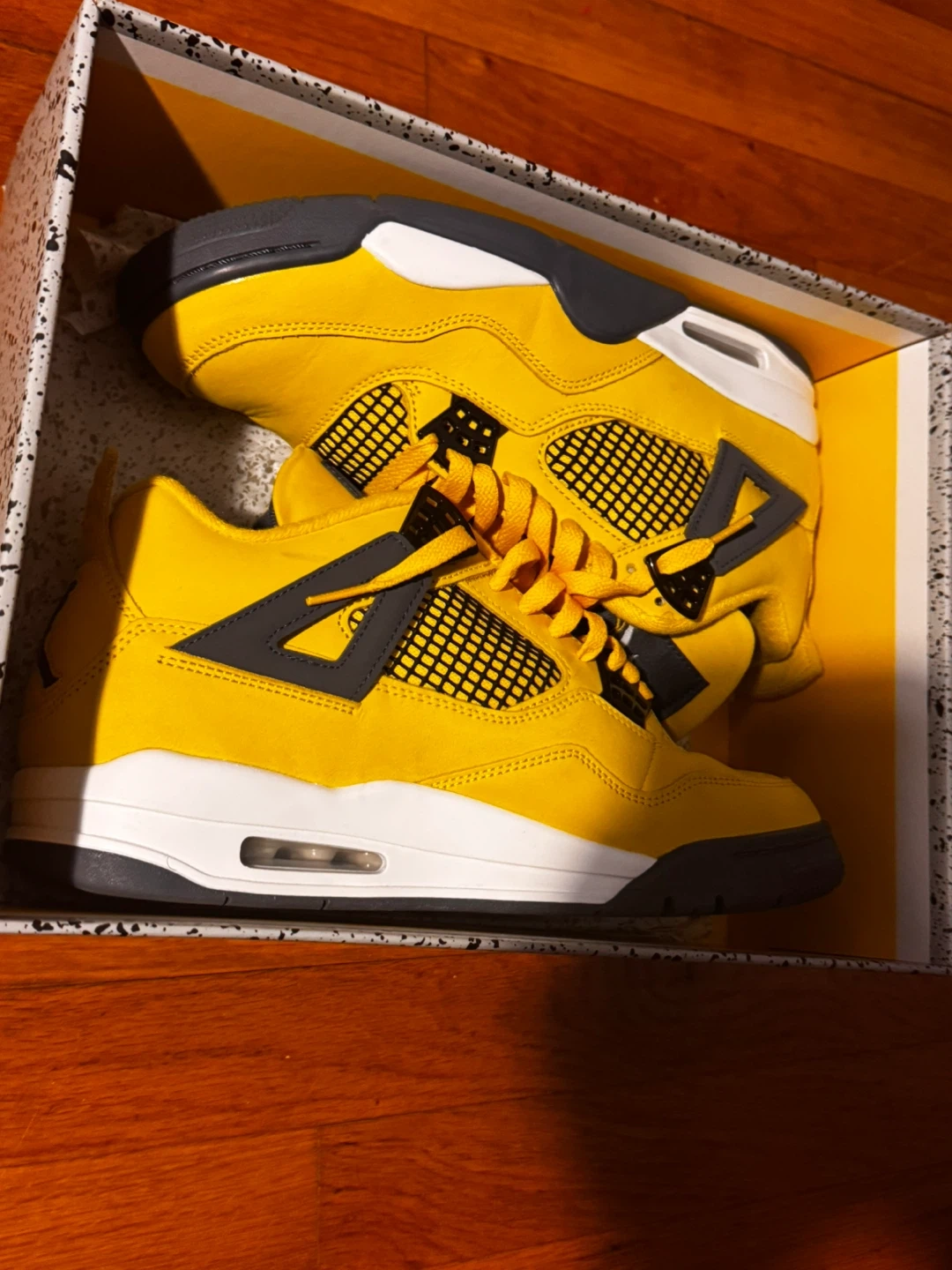 Selling a pair of Air Jordan 4 Retro in the Lightning colorway. These sneakers are in great condition and come with the original box. A classic addition to any sneaker collection!