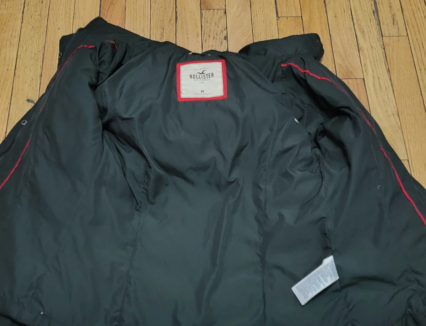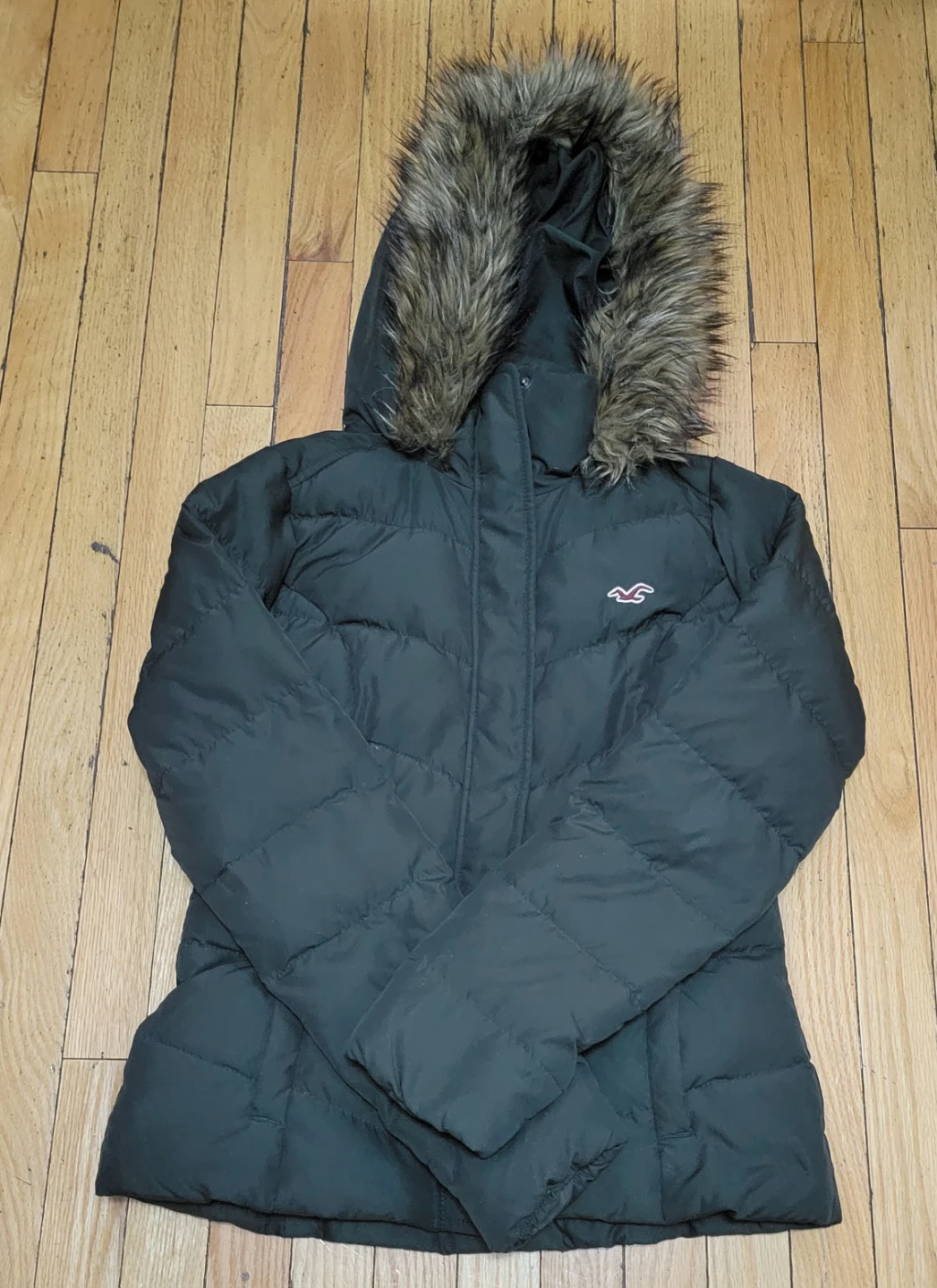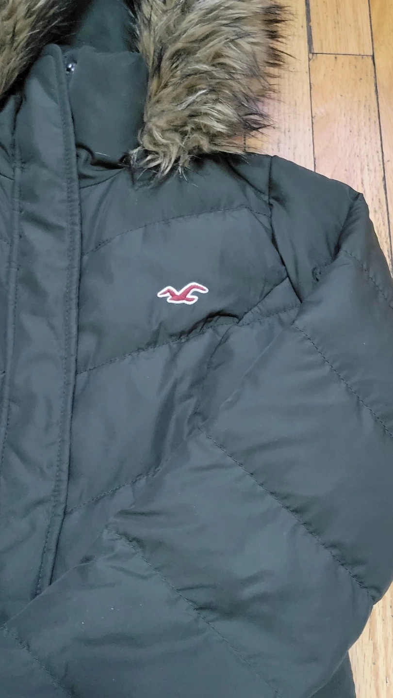 Selling a Hollister puffer jacket in great condition! It's a size medium and features a faux fur-trimmed hood. Perfect for staying warm and stylish during the colder months