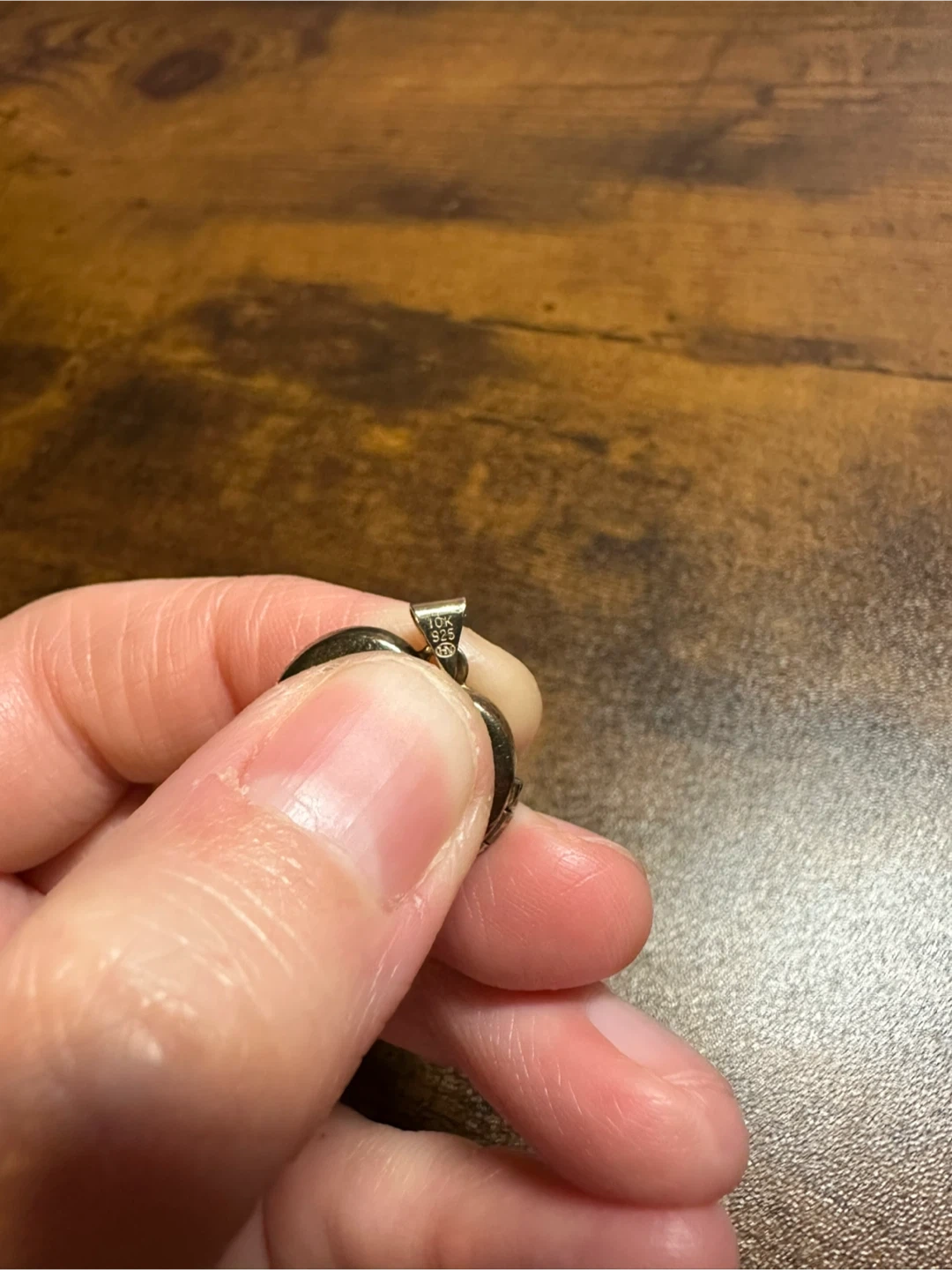 This small locket (no chain) is etched with 10k and 925 indicating that it’s made from both 10k gold and sterling silver.