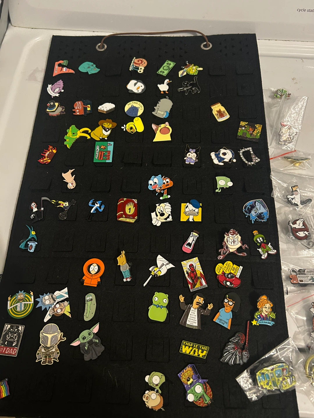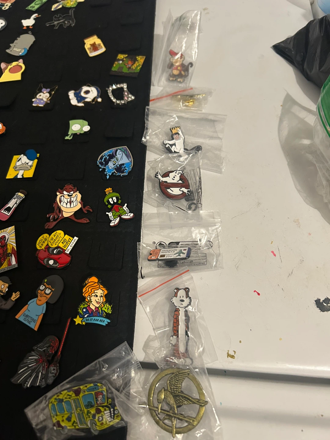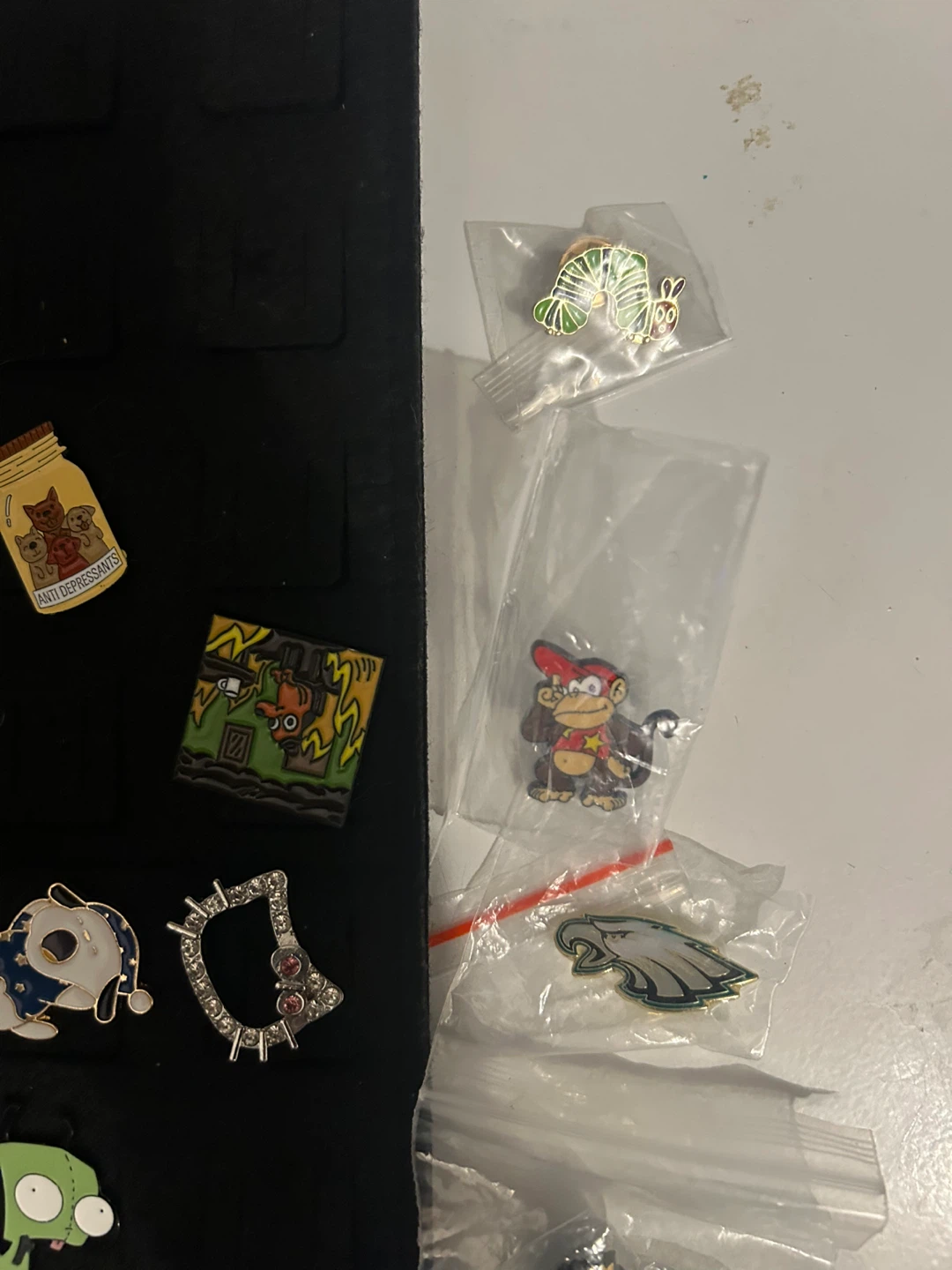 Selling a collection of enamel pins featuring various cartoon characters. They're in great condition and ready to add some fun to your collection or outfit!