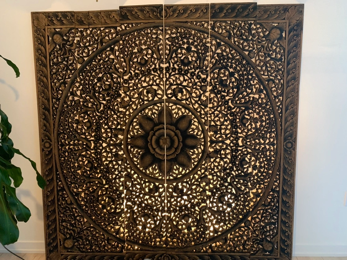 Teak wood carved out wall art