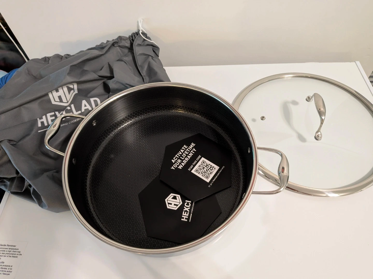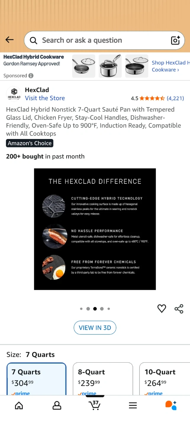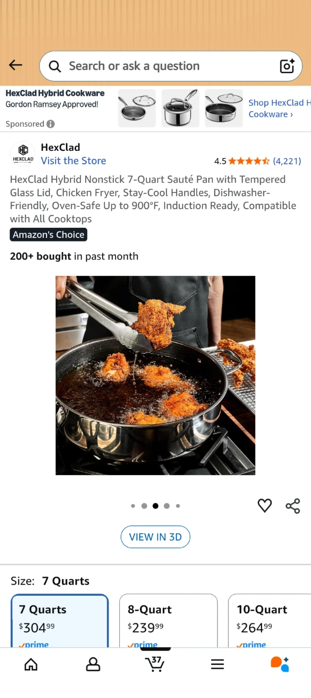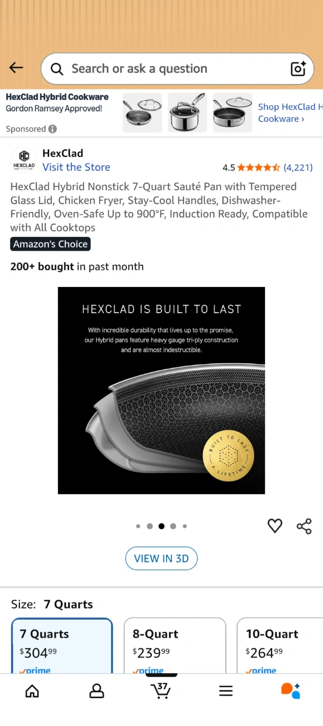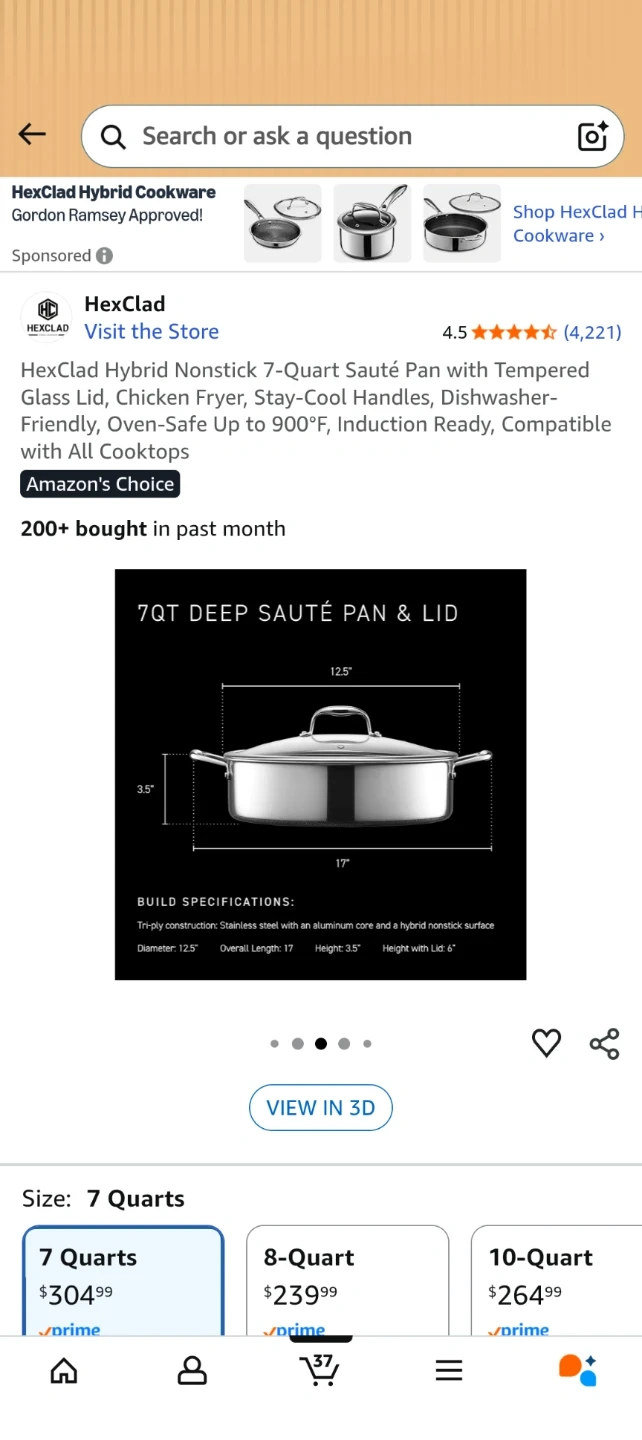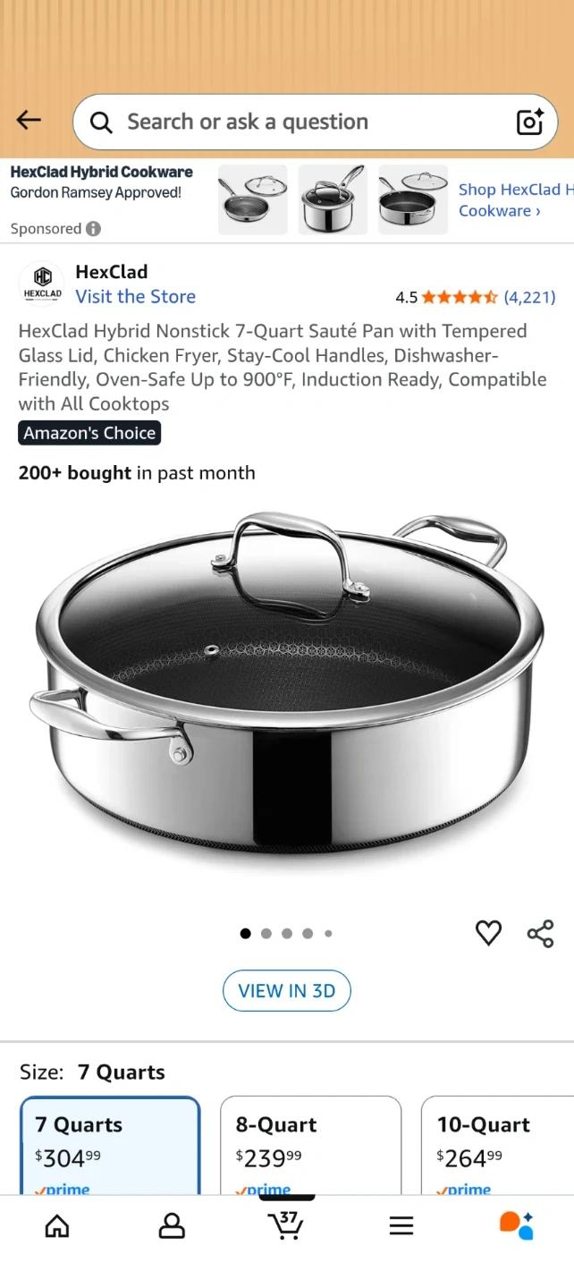 Selling a HexClad Hybrid Nonstick 7-Quart Sauté Pan with Tempered Glass Lid! This pan is designed for frying, and has stay-cool handles. It's also dishwasher-friendly and oven-safe up to 900°F. Compatible with all cooktops!