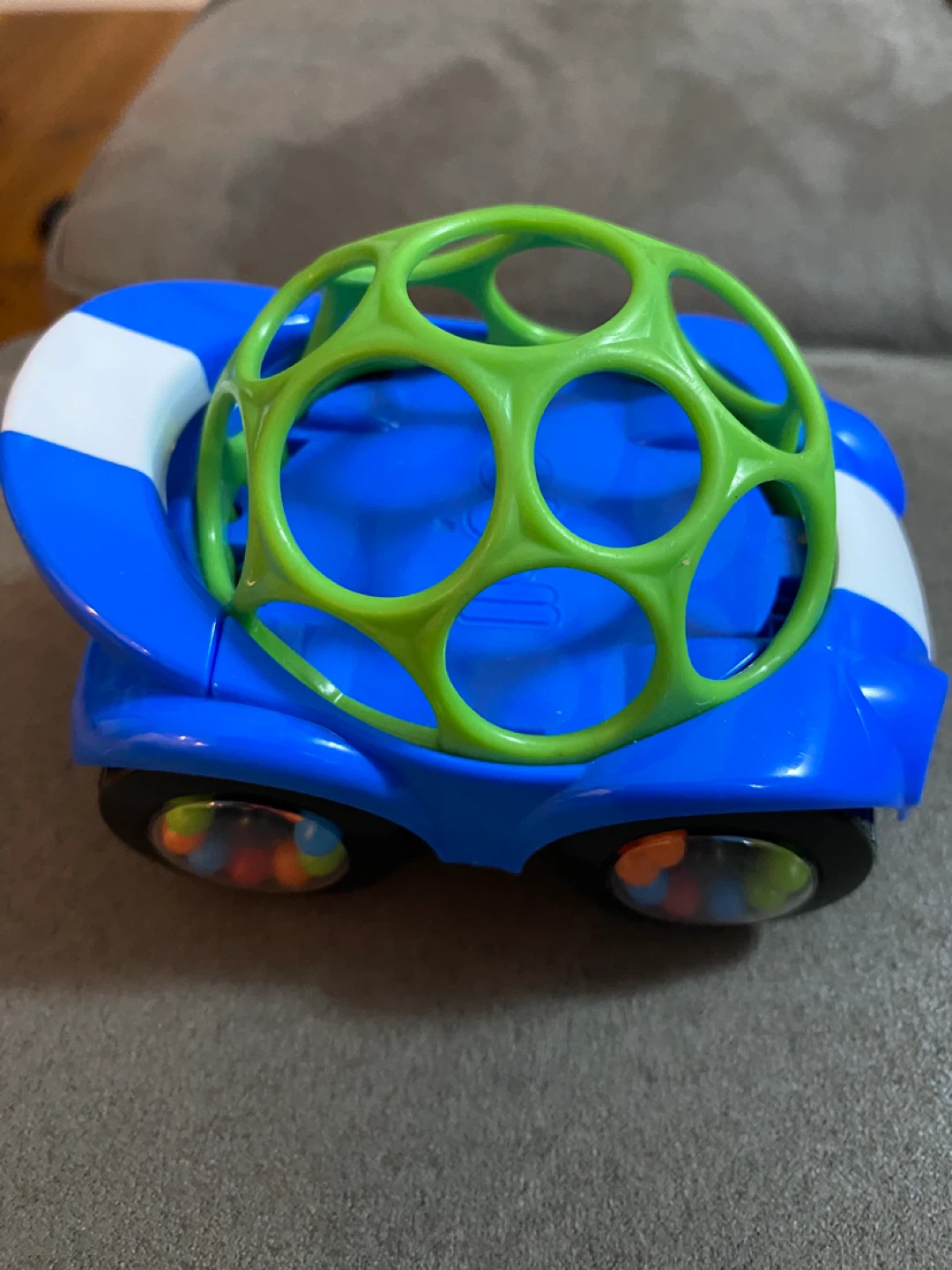 The Oball Go Grippers Bounce 'N Zoom Car is ready for a new home! It features the signature Oball design, making it easy for little hands to grip and play with. The bright colours and fun design will keep your little one entertained for hours