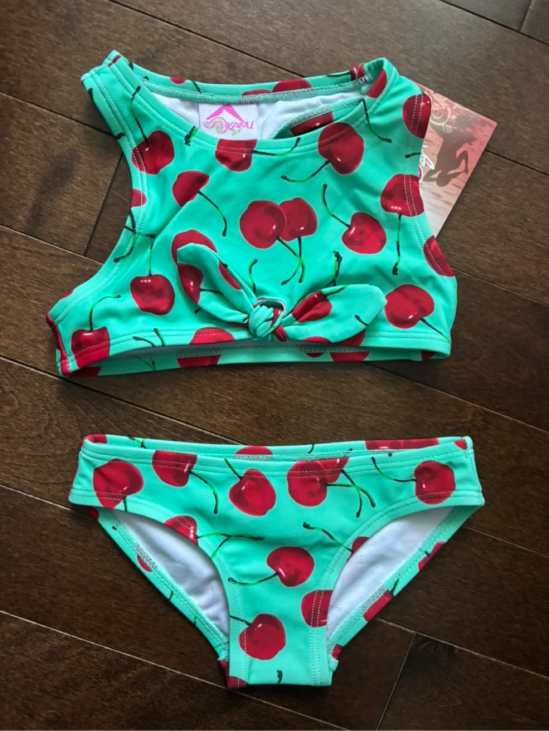 Lime green with cherries Girls' Swimsuit - Size 3T