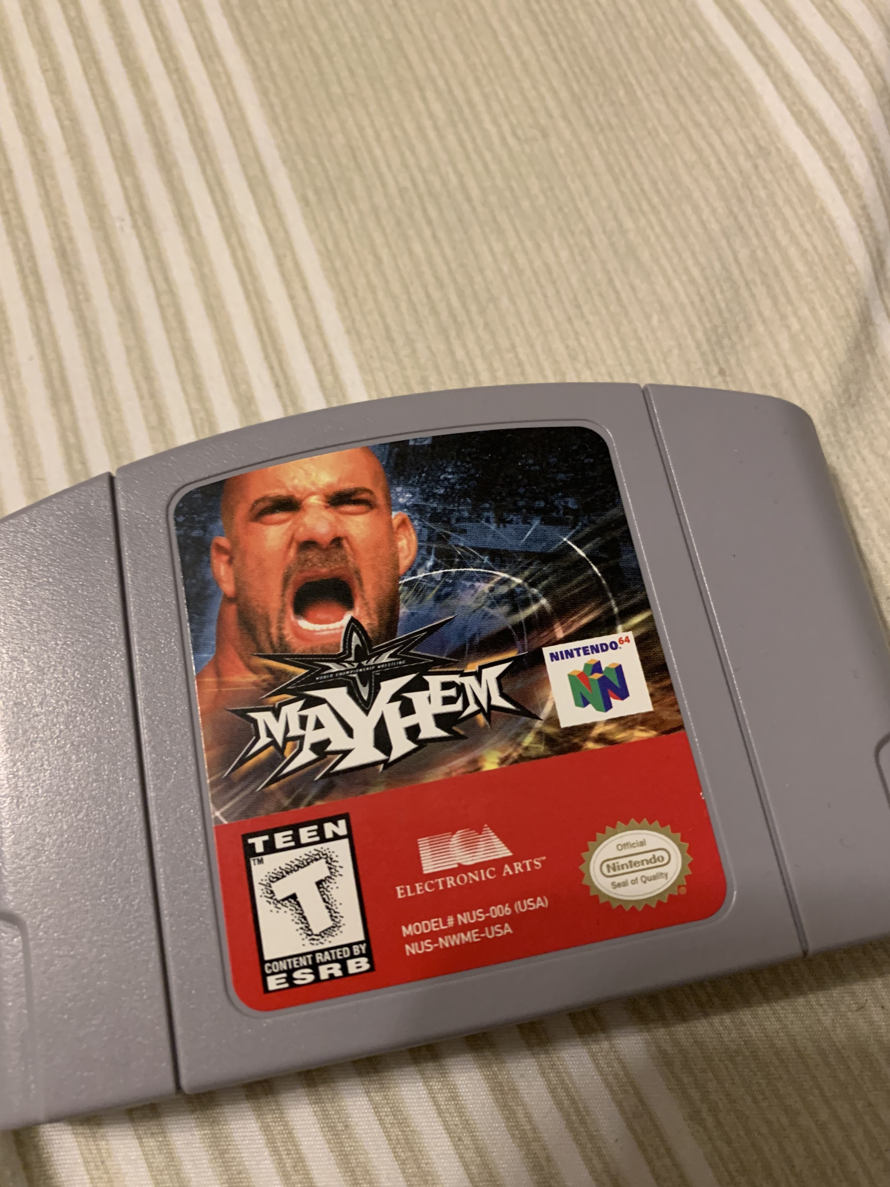 1 / 11 / 1Buy & SellWWF Mayhem Nintendo 64 GameWWF Mayhem Nintendo 64 Game$15Selling a WWF Mayhem game for the Nintendo 64! Rated Teen by the ESRB. Model number is NUS-006 (USA).WHERE TO MEETCheck LocationView MapSELLERColeGarden City886 reviews0 chats·0 favorites·1 viewsSEND CHAT TO SELLERHi Cole! I’m interested in your listing.Hi Cole! I’m interested in your listing.Get the Karrot app to chatSign In to chat