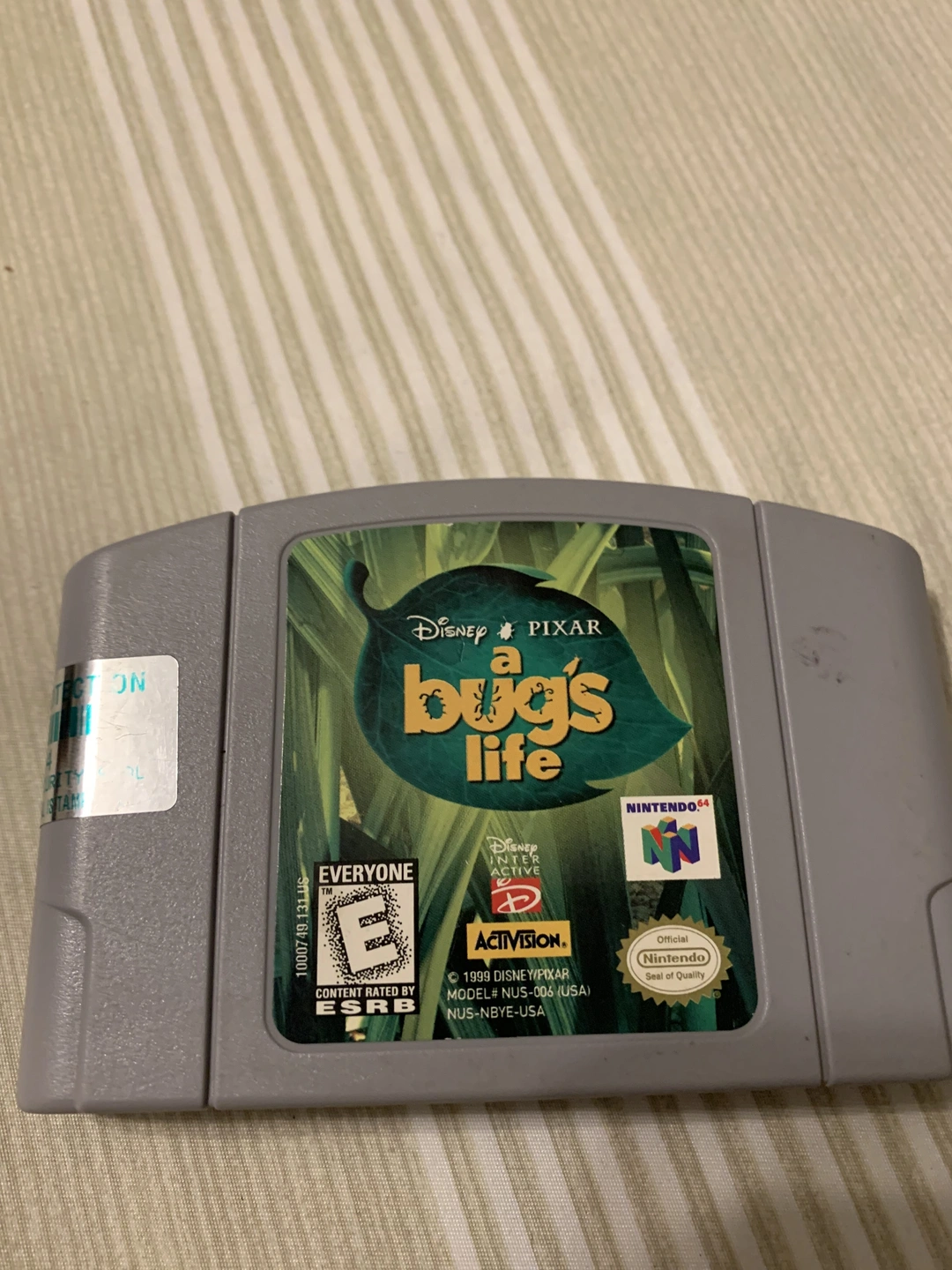 Selling a used copy of Disney Pixar's A Bug's Life for the Nintendo 64! This game is rated E for Everyone by the ESRB and was released in 1999 by Activision. A fun game for all ages!