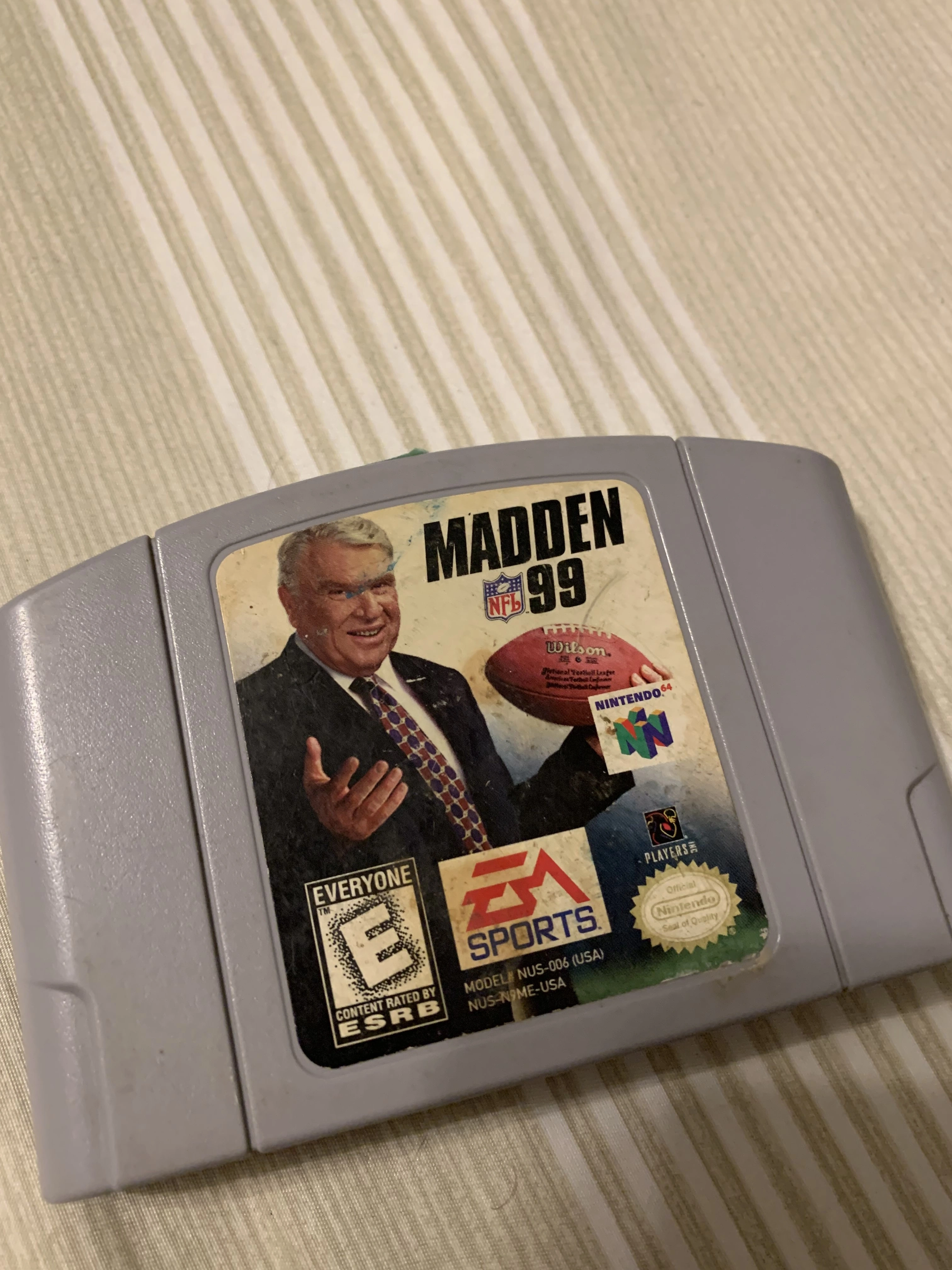 Selling a used Madden NFL 99 game for the Nintendo 64! It's rated E for Everyone and published by EA Sports. A classic for any N64 collector!
