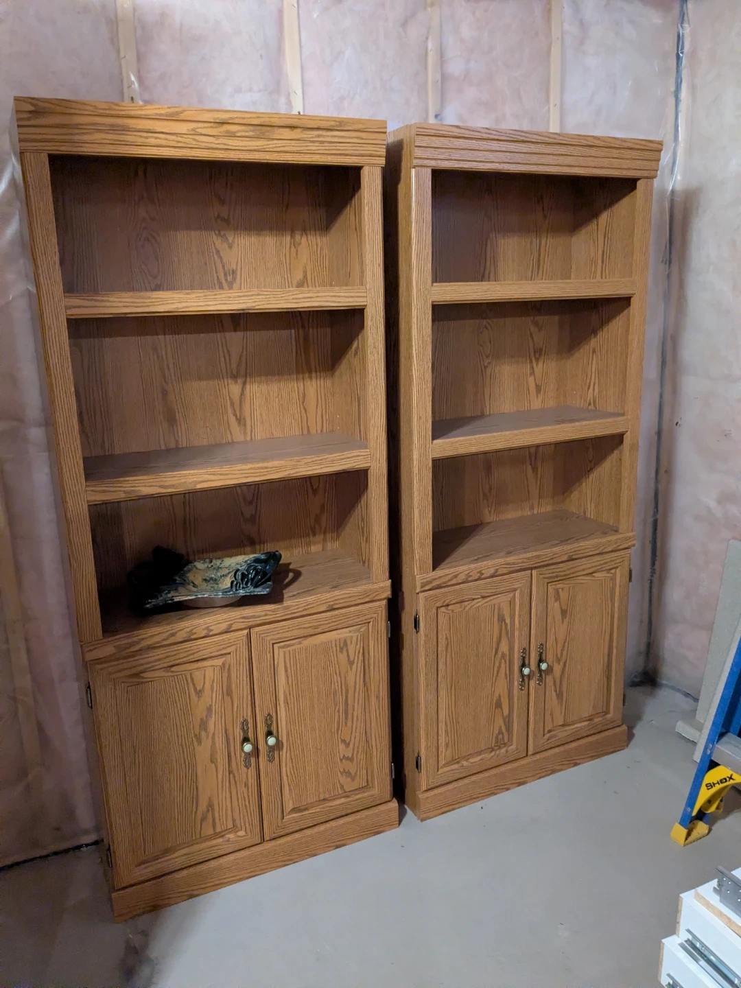 One bookcase available feature a classic design with adjustable shelves and a cabinet at the bottom for extra storage. Great for any room in the house!