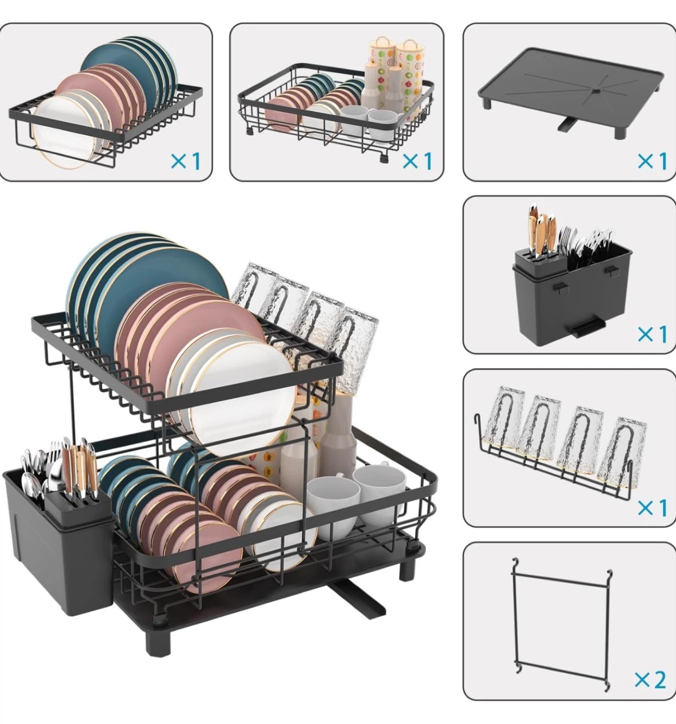 • Product Functionality: A multi-functional dish drying rack with a double-layer design, providing ample storage space for various kitchen utensils.