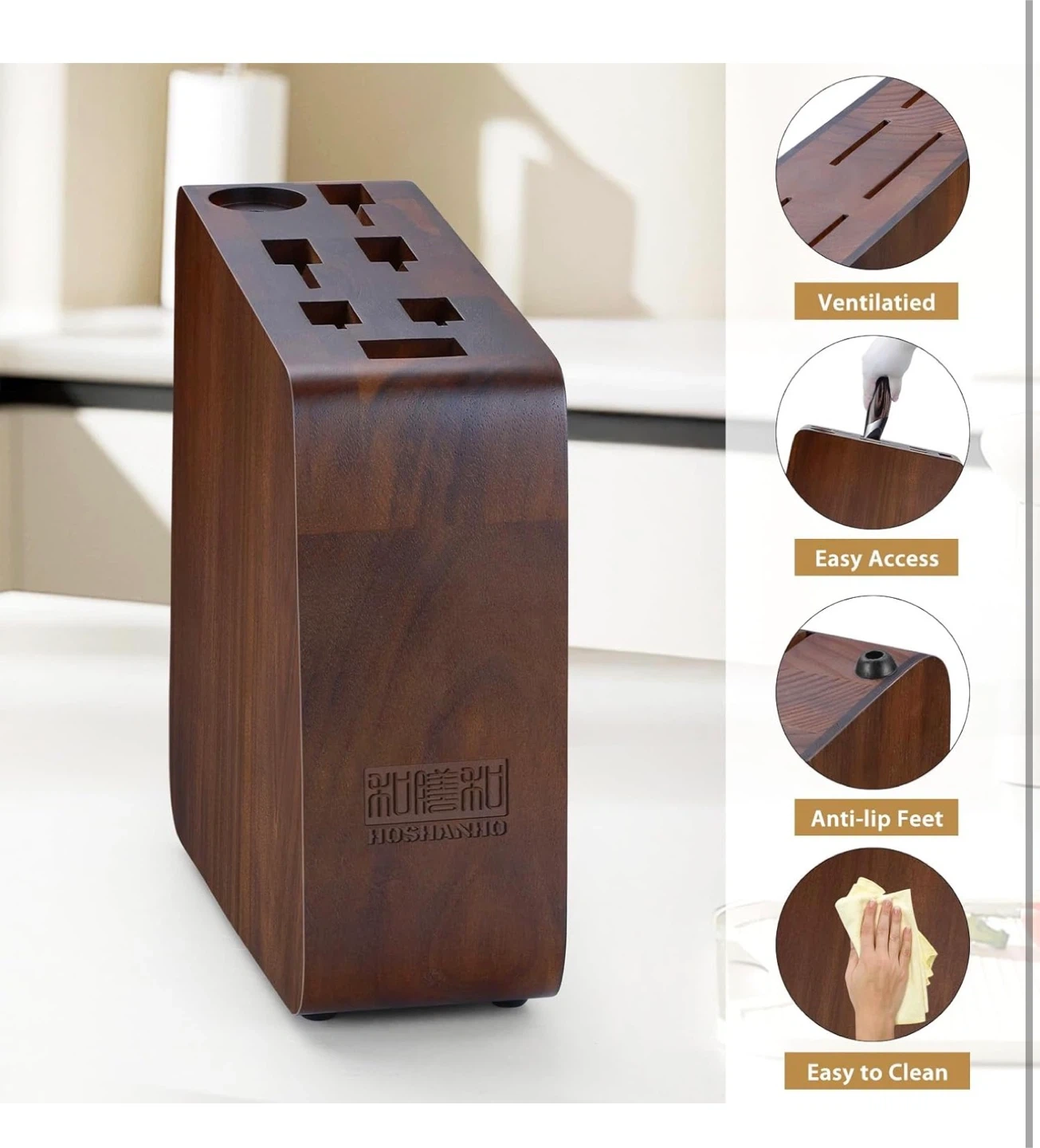 • Storage Capacity: 7 slots accommodate knives, scissors, and sharpening rods, offering organized and accessible storage.
