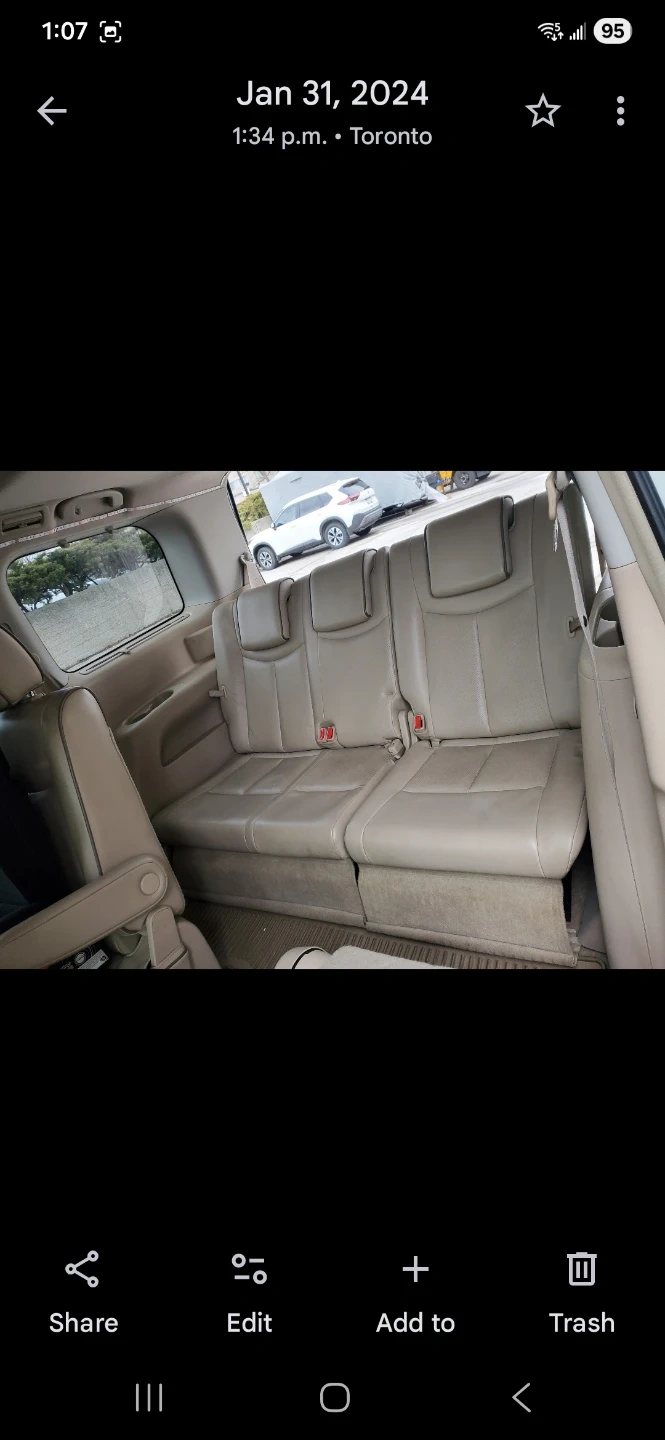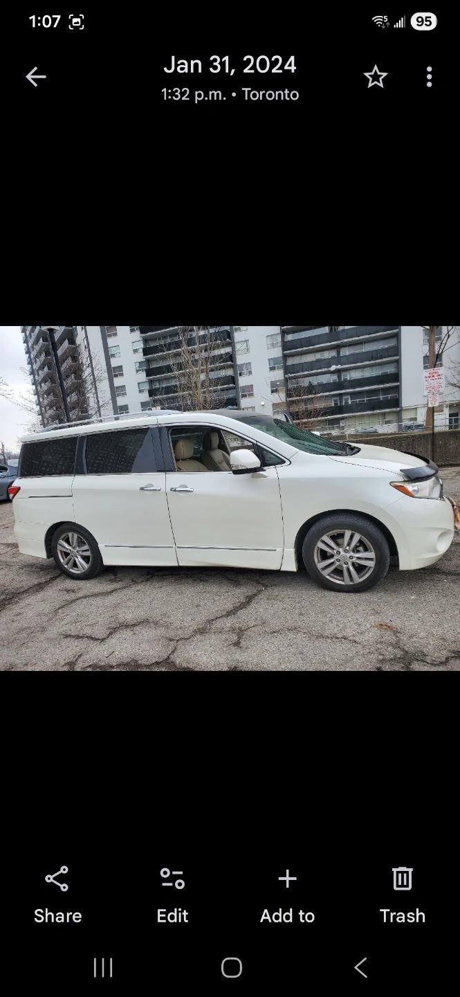 Selling a Nissan Quest minivan. It's white with a beige interior. The car appears to be in good condition and has a backup camera.