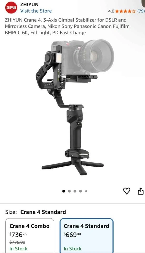ZHIYUN Crane 4, 3-Axis Gimbal Stabilizer
