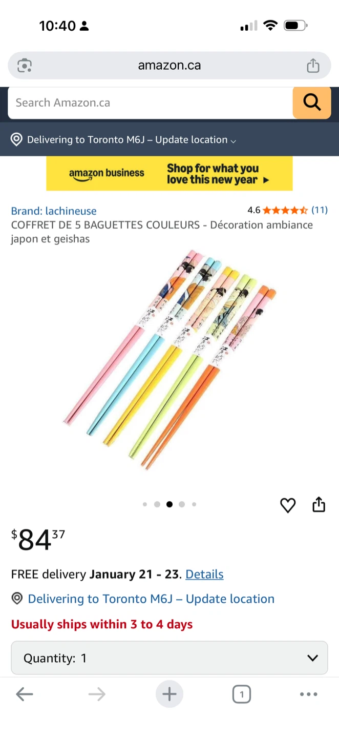 1 / 31 / 3Buy & SellNew unused Lachineuse Chopsticks Set of 5New unused Lachineuse Chopsticks Set of 5$6Selling a set of 5 Lachineuse chopsticks! They feature a lovely decoration ambiance of Japan and geishas.ConditionNewWHERE TO MEETTD Canada Trust Branch and ATMView MapSELLERverifiedSamyDowntown Toronto64881 reviews0 chats·2 favorites·38 viewsSEND CHAT TO SELLERHi Samy! I’m interested in your listing.Hi Samy! I’m interested in your listing.Get the Karrot app to chatSign In to chat