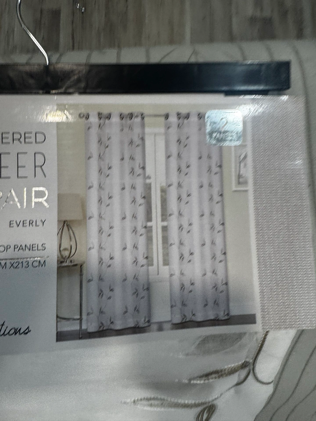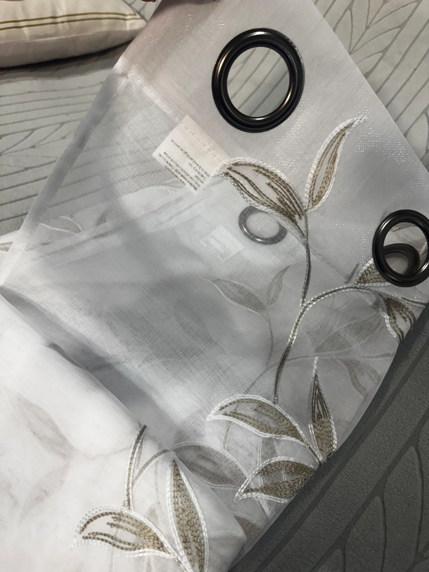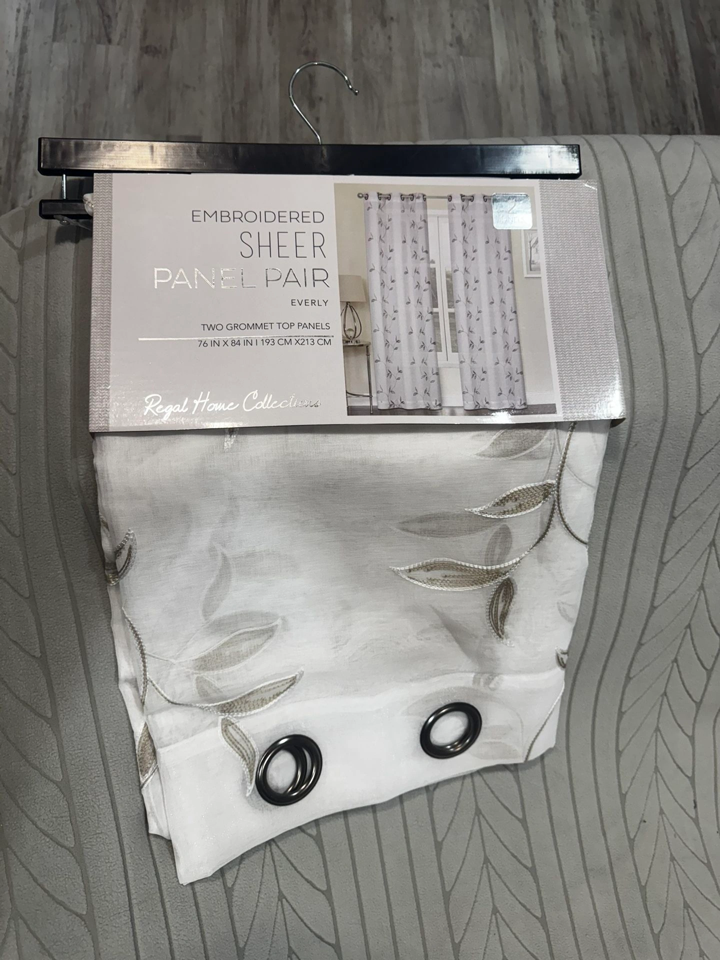 Add a soft, elegant touch to any room with this brand-new pair of embroidered sheer curtains from Regal Home Collections. The Everly design features delicate taupe and white leaf embroidery on a light, airy sheer fabric—perfect for letting in natural light while maintaining a stylish layer of privacy.