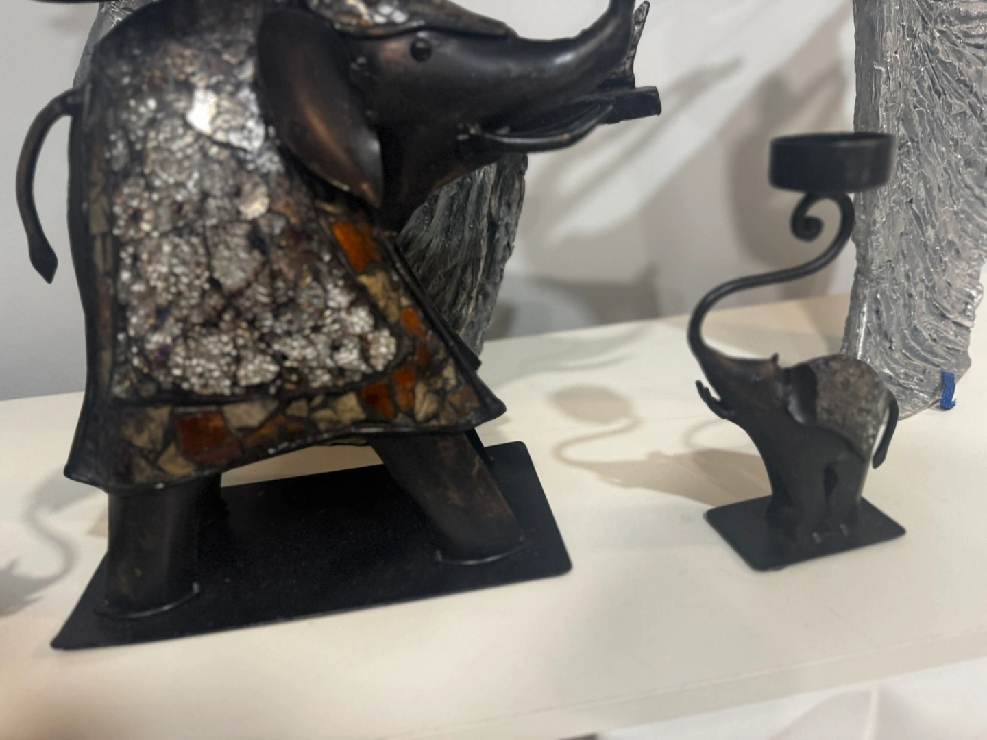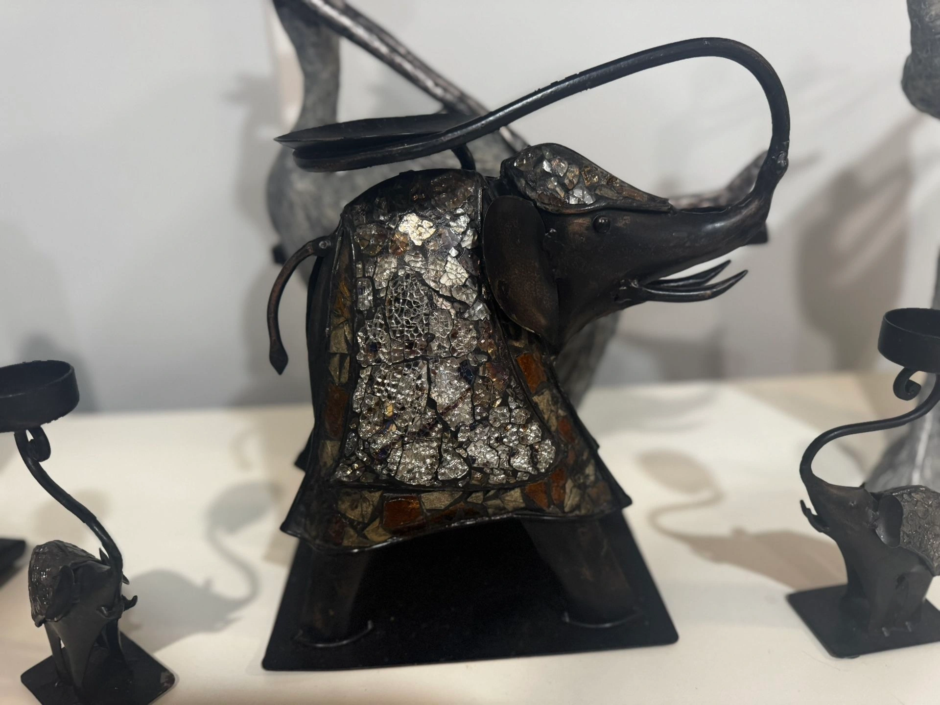 • Set Includes: 1 large mosaic elephant + 2 small elephant candle holders