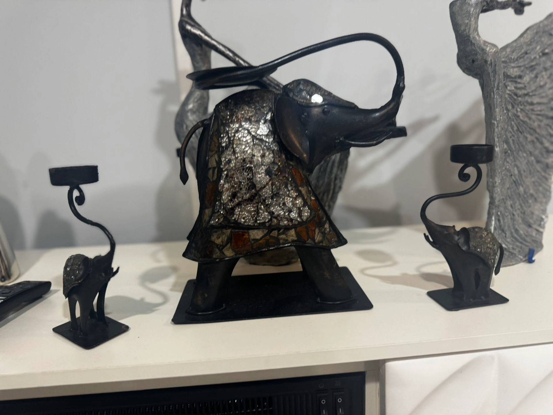 Metal Elephant Sculpture Set - 3 Candle Holders