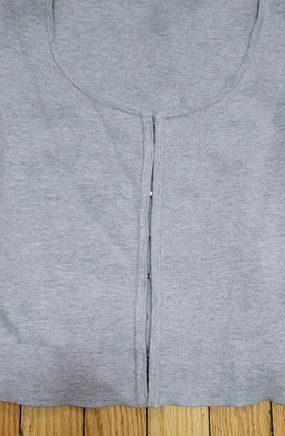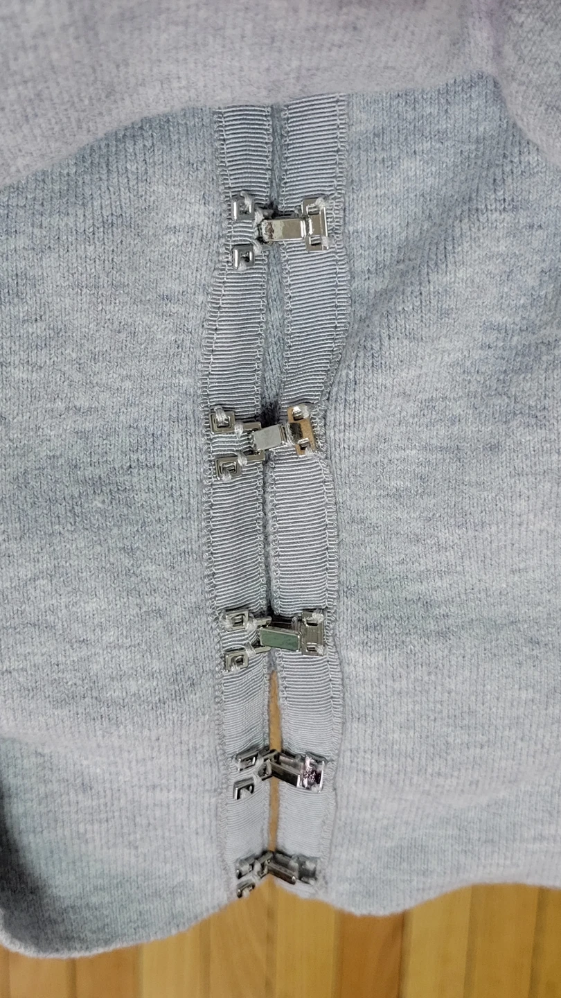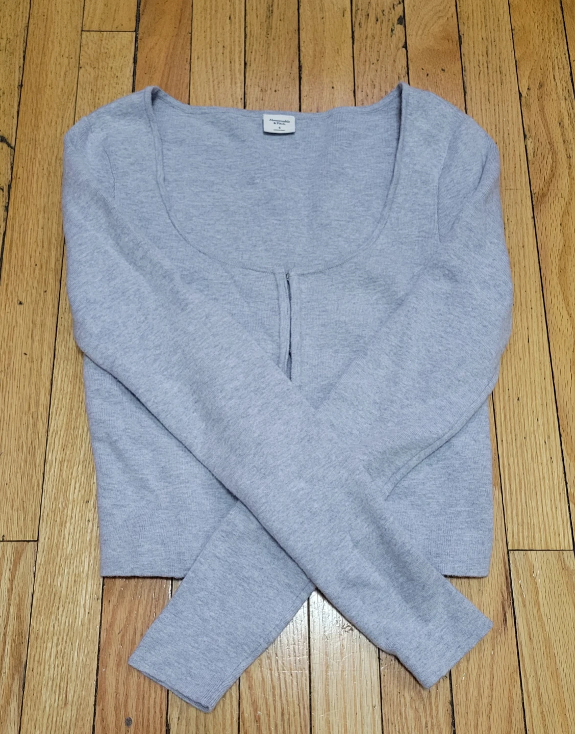 Selling a cute gray cardigan from Abercrombie & Fitch in size small! It's in great condition and ready for a new owner. The cardigan features a unique hook and eye closure down the front. Perfect for layering or wearing on its own