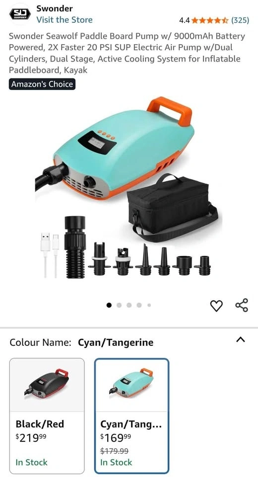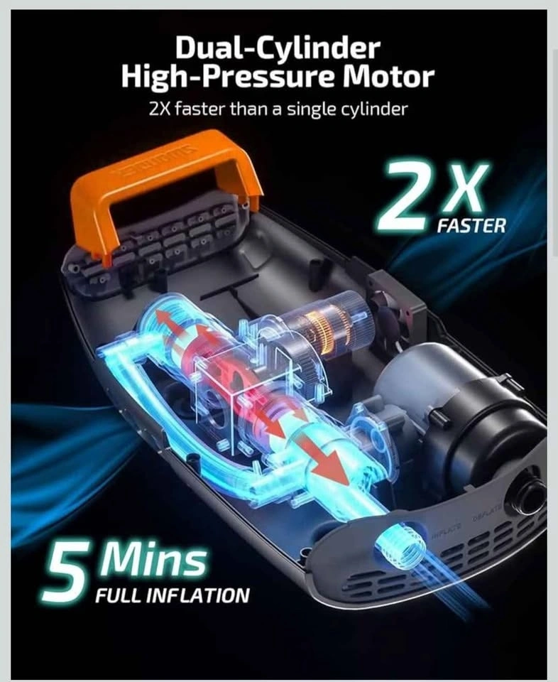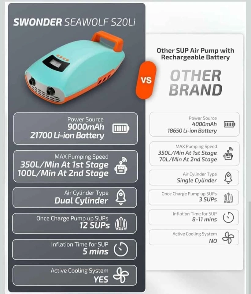 Swonder Seawolf Paddle Board Pump w/ 9000mAh Battery Powered, 2X Faster 20 PSI SUP Electric Air Pump w/Dual Cylinders, Dual Stage, Active Cooling System for Inflatable Paddleboard, Kayak