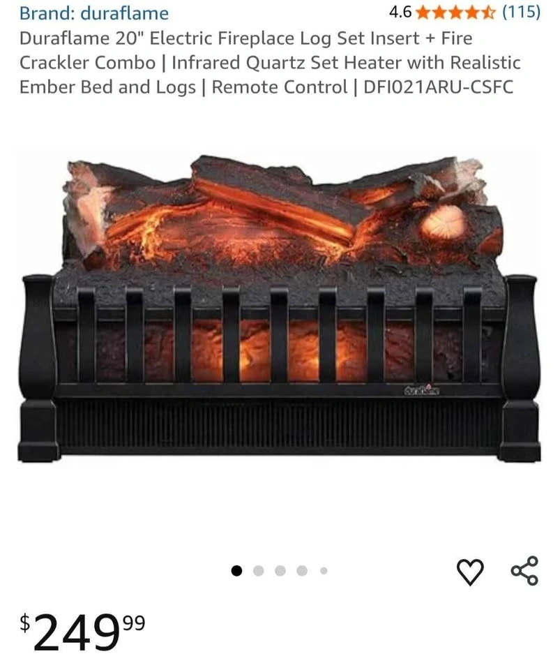 Electric Fireplace Insert Logs, 20-Inch Infrared Quartz Fake Fireplace Heater, Realistic Birchwood Logs, Adjustable Temperature, Overheat Protection, 1500W, Black
