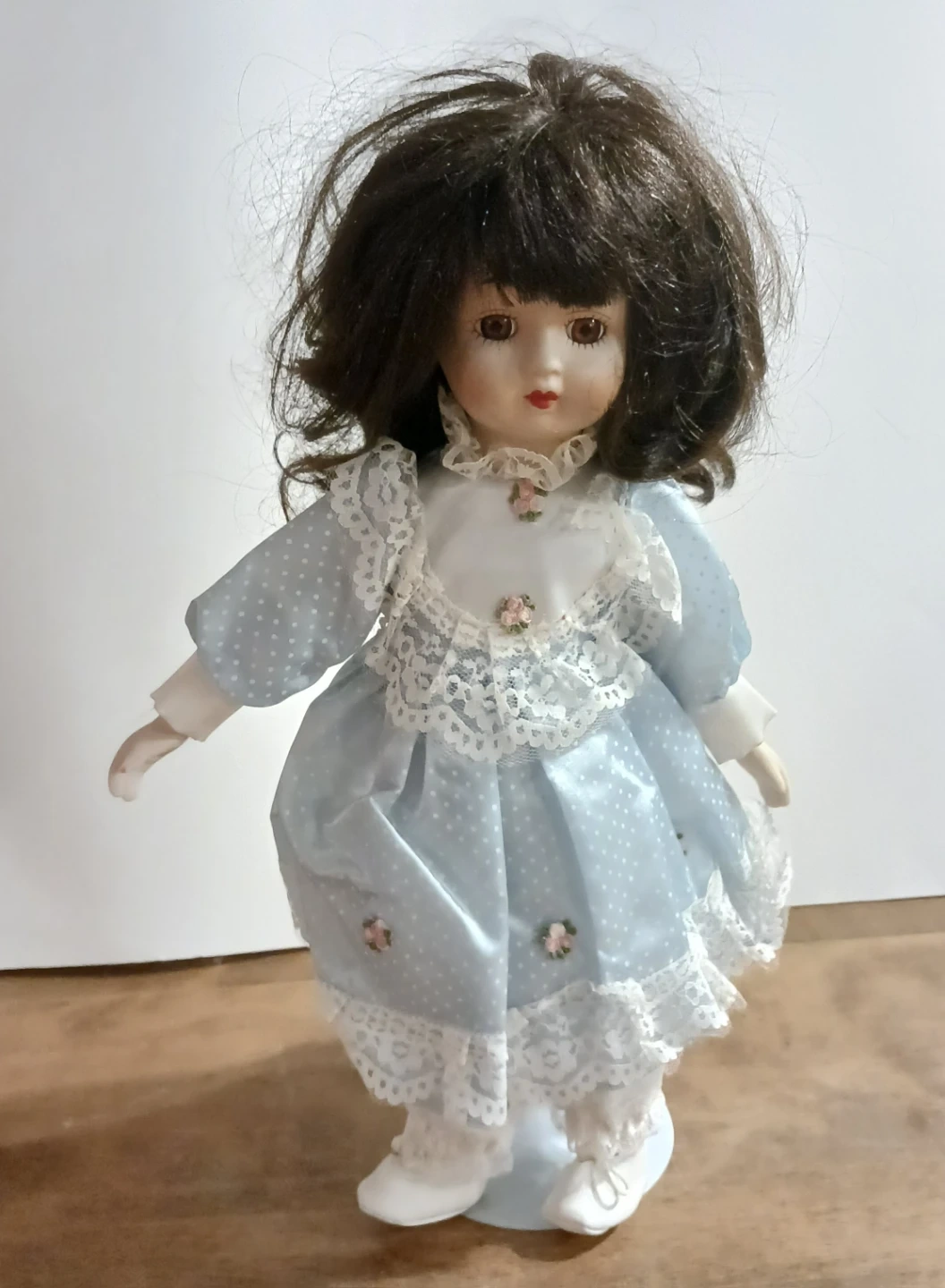 Selling a collection of porcelain dolls. Each doll has a unique dress and hairstyle. They are in good condition and would make a lovely addition to any collection