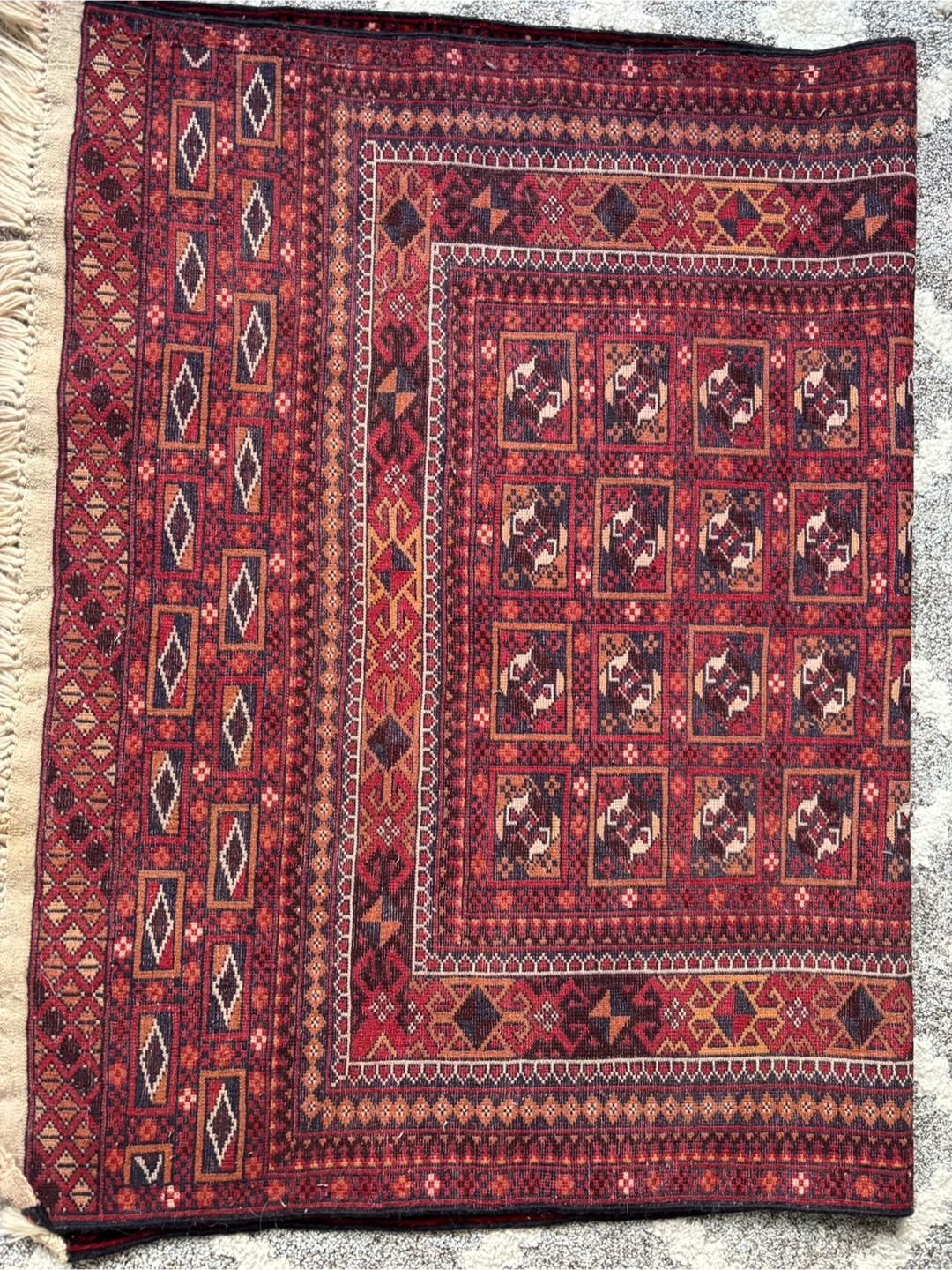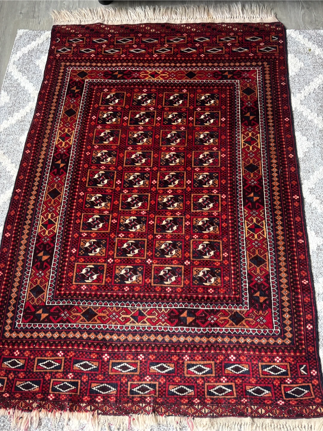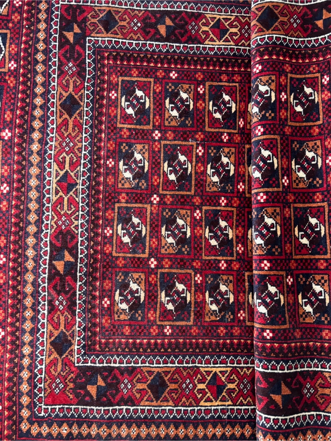 Beautiful traditional Afghan handwoven rug featuring a classic tribal pattern. This rug is made from natural wool and dyed with rich, warm colors that have aged beautifully over time. Each detail reflects true craftsmanship and cultural heritage, making it a unique piece for home décor or collectors.
