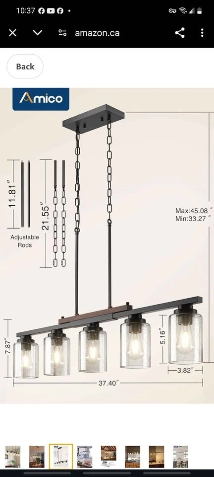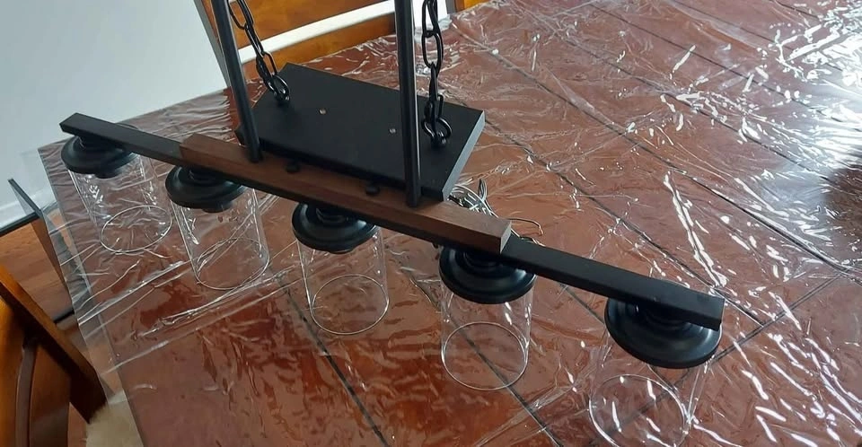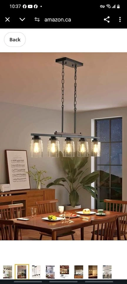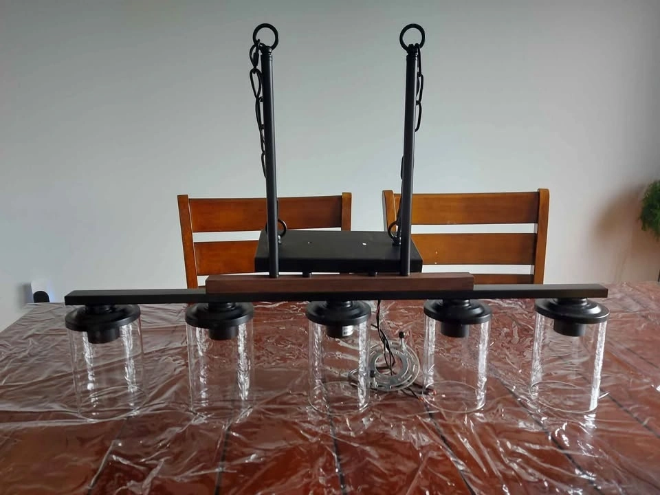 Kitchen Island Lighting, Farmhouse Pendant Lights Kitchen Island, Chandeliers for Dining Room with Glass Shade and Adjustable Rods Pendant Lighting Fixture (Bulb not Included) (5-Light).