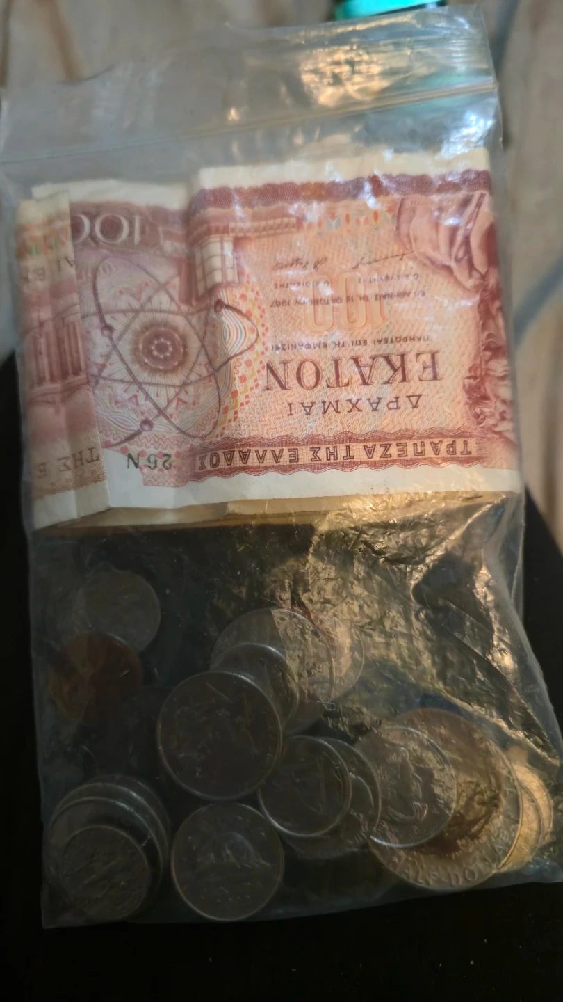 Selling a bag of old foreign currency, including stack of Greek Drachmas and some coins (one penny from 1800s) (a European half penny from 1910) (american 1973 50 cent coin in mint condition) plus more Great for collectors or anyone interested in a bit of international history!