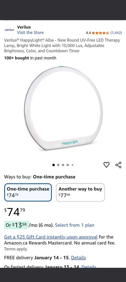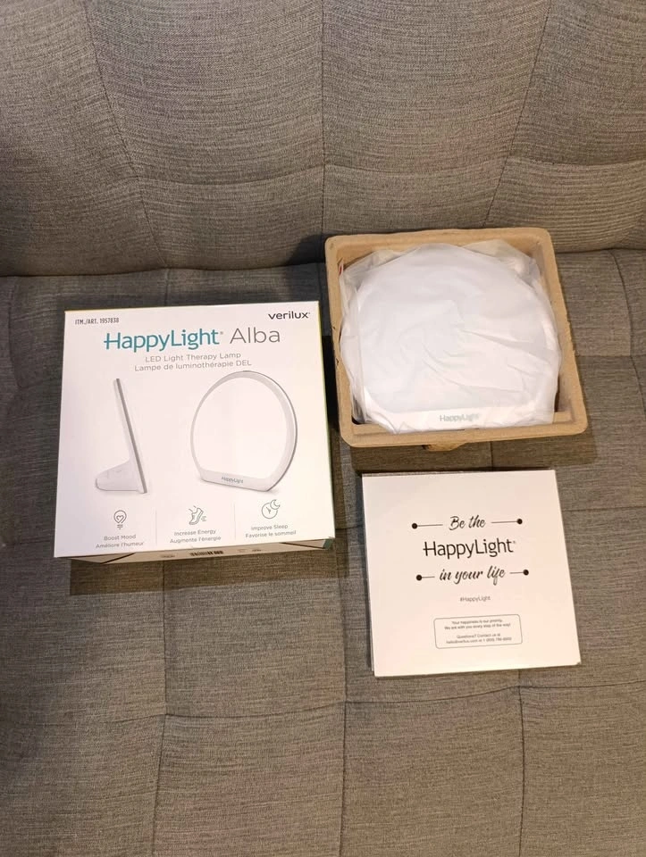 BRAND NEW Verilux HappyLight Alba - New Round UV-Free LED Therapy Lamp, Bright White Light with 10,000 Lux, Adjustable Brightness, Color, and Countdown Timer