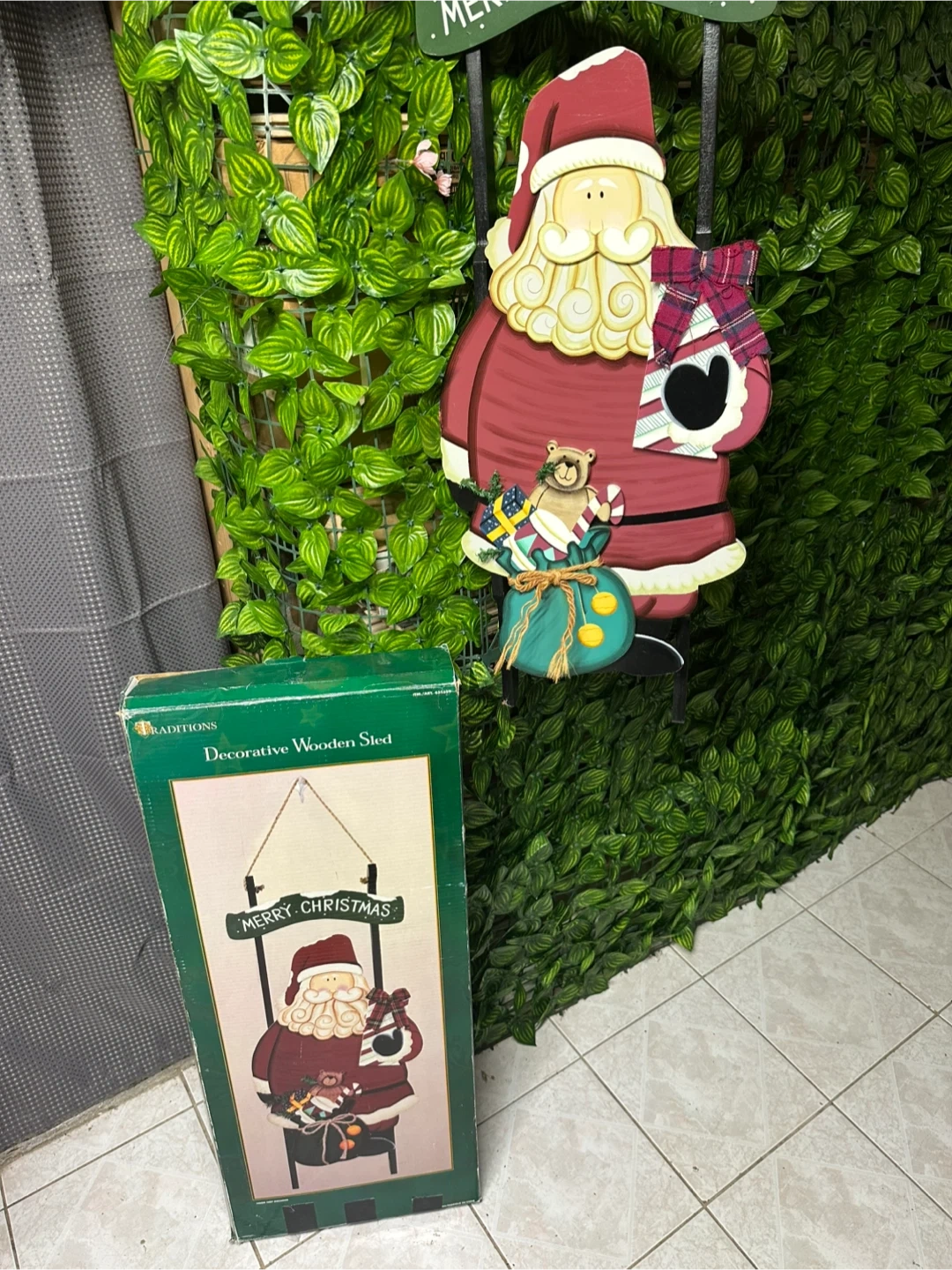 Selling a Traditions decorative wooden sled, perfect for adding a festive touch to your home this holiday season! This charming piece features a classic design with a Santa Claus figure and a "Merry Christmas" sign. The sled is in good condition and comes with its original box