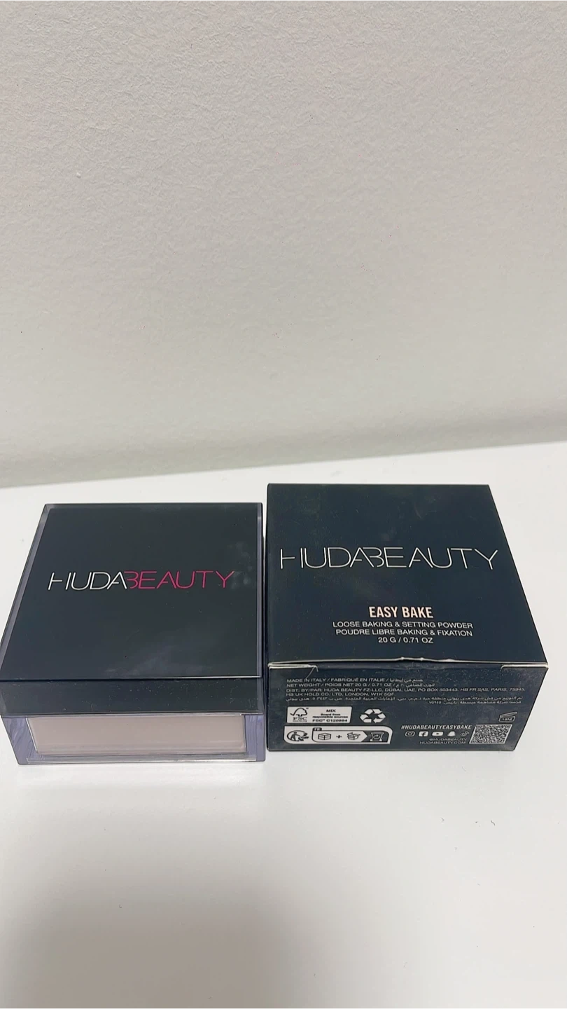Selling a Huda Beauty Easy Bake Loose Baking & Setting Powder in the colour Peach Pie! It comes with the box. This loose powder is known for its lightweight formula and ability to set makeup for a flawless finish
