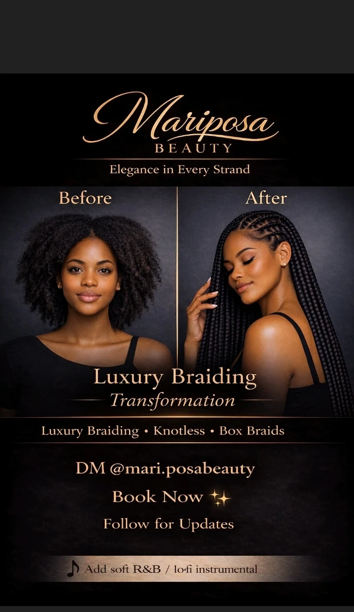 Offering professional braiding services with a luxury touch. Each appointment includes personalized styling, meticulous execution, and a polished finish. Perfect for clients seeking refined, protective styles with lasting results.