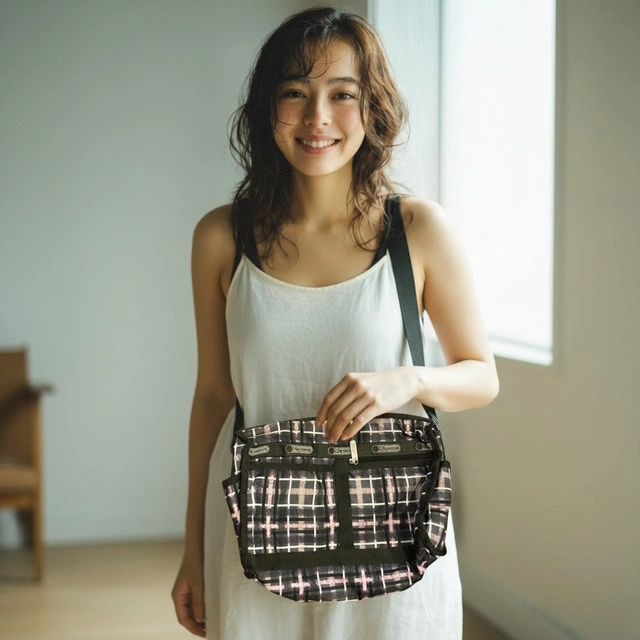 For sale is an original LeSportsac crossbody shoulder bag in a grey plaid / check pattern, known for its lightweight and practical design. This bag is ideal for daily errands, travel, or casual outings.