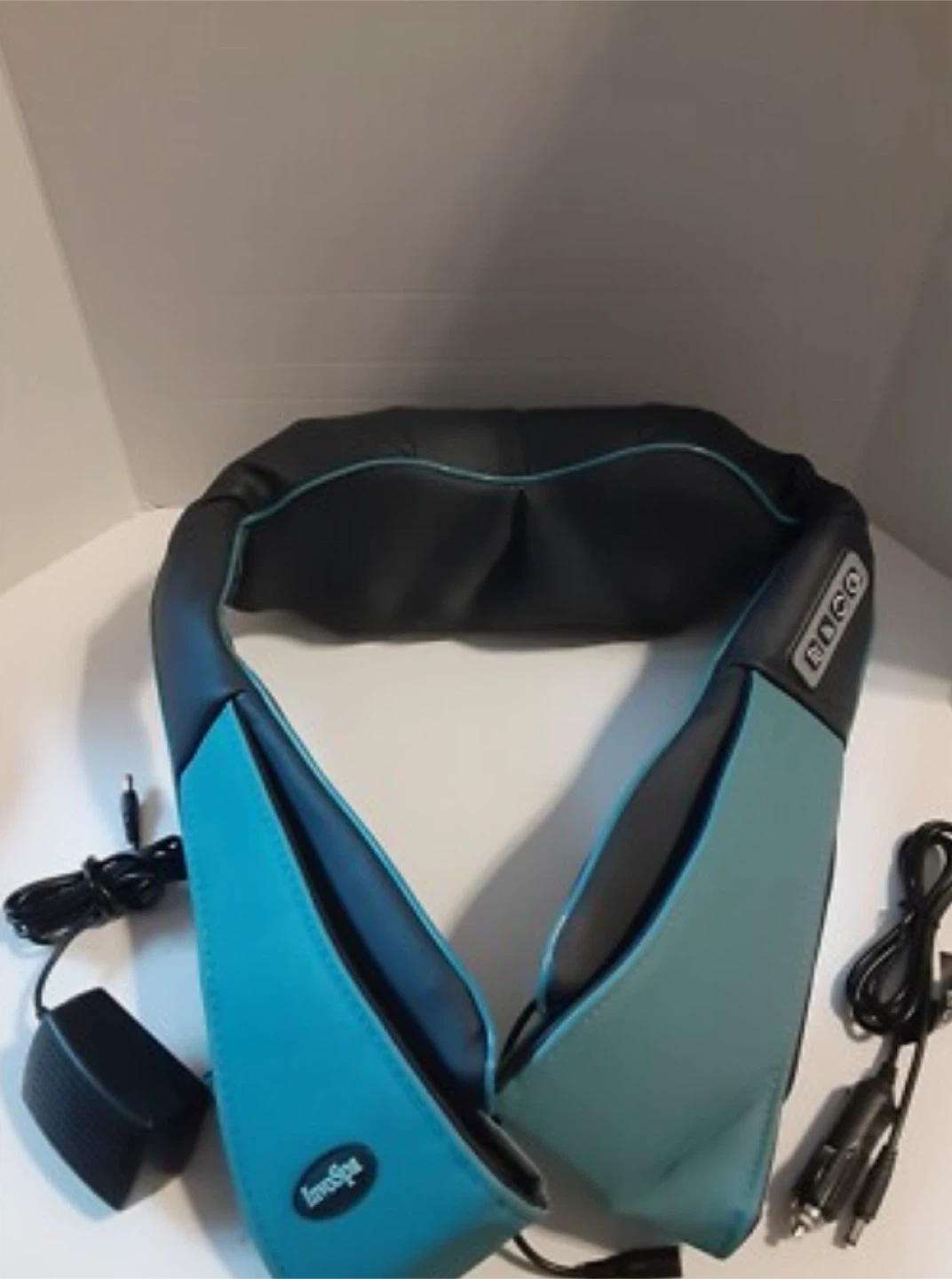 Indulge in relaxation with this InvoSpa massager featuring deep-kneading shiatsu massage nodes that target neck, shoulder, and back tension, complete with adjustable heat settings. This unit is in good condition.