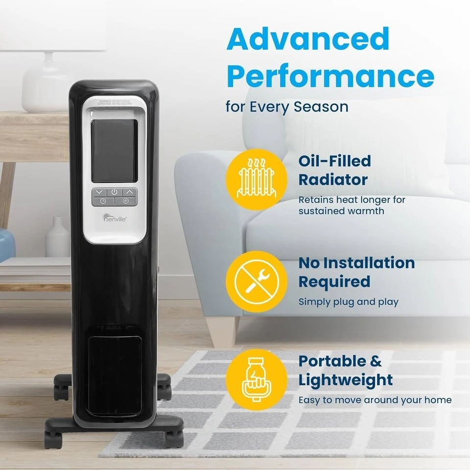 Electric Space Heater: Enjoy breezeless, noise-free warmth with our oil filled electric space heater, perfect for uninterrupted work or relaxation in your home or office. Plug & Play Heater: Simple setup with no installation required. Just position your oil heater, plug it in, and experience cozy warmth in any indoor space. Energy-Efficient Heating: Our oil filled radiator heater is designed to provide efficient, cost-effective warmth, reducing your energy bills without sacrificing comfort. Tailored Warmth: With 3 heat settings and 5 adjustable temperature options, easily customize your heating needs, making it an ideal heater for your bedroom or any room. Safety First: Equipped with advanced safety features, this oil filled heater ensures a safe heating solution for your family, with overheat protection and a stable, tip-resistant design. *Remote control batteries not included.