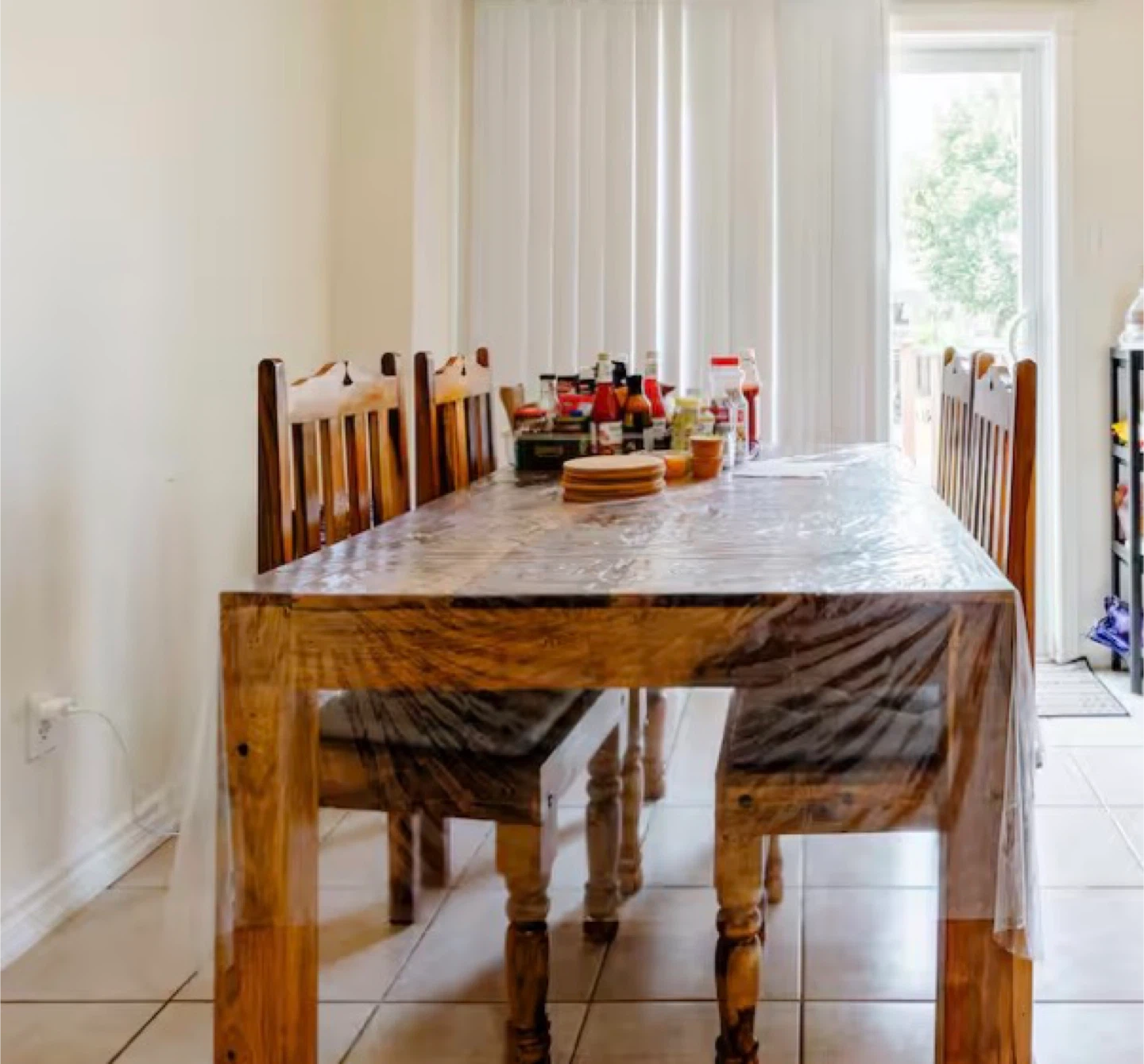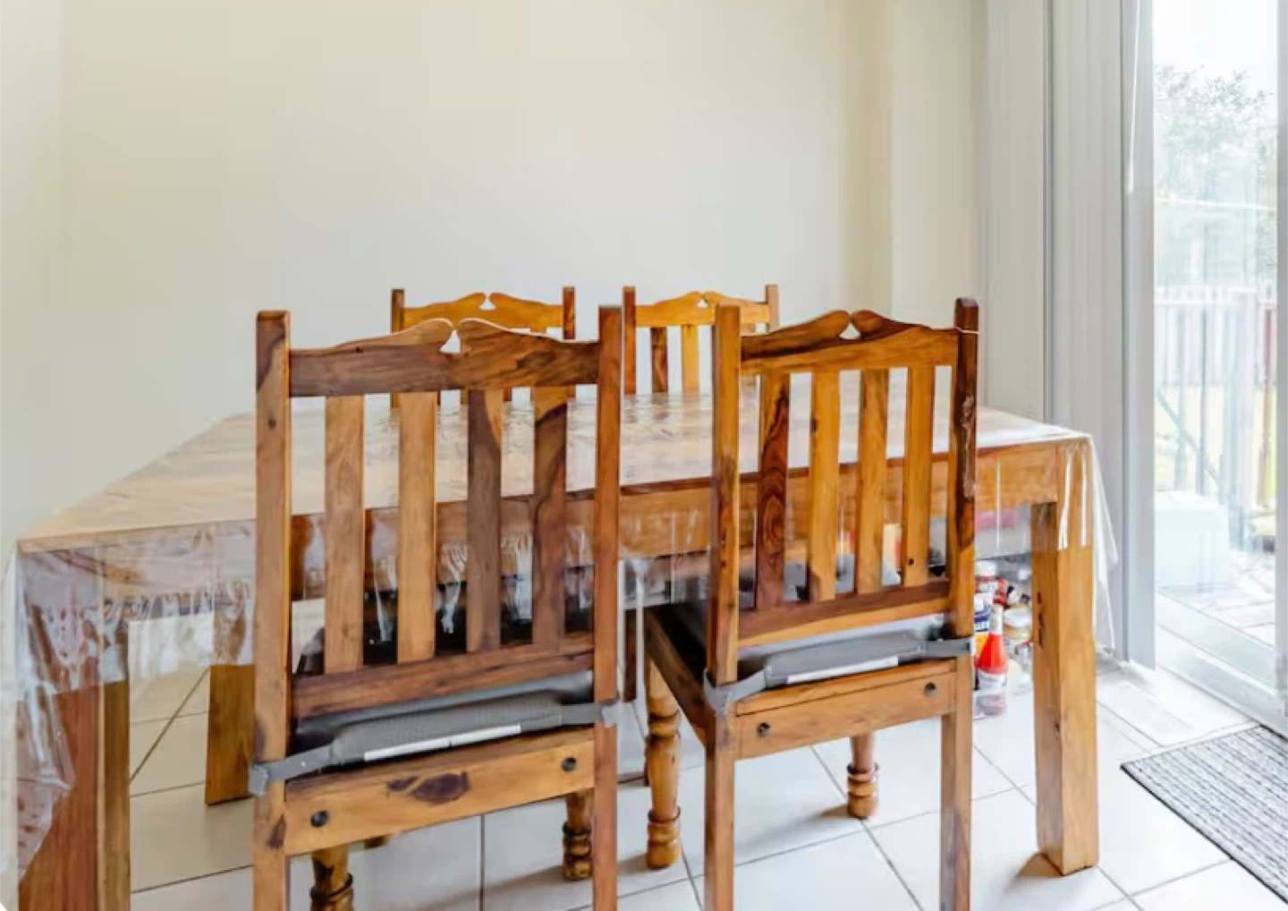 Selling a solid wood dining table set, complete with 4 matching chairs! It's perfect for family dinners or hosting friends. The set is in great condition and ready to be the centrepiece of your dining area