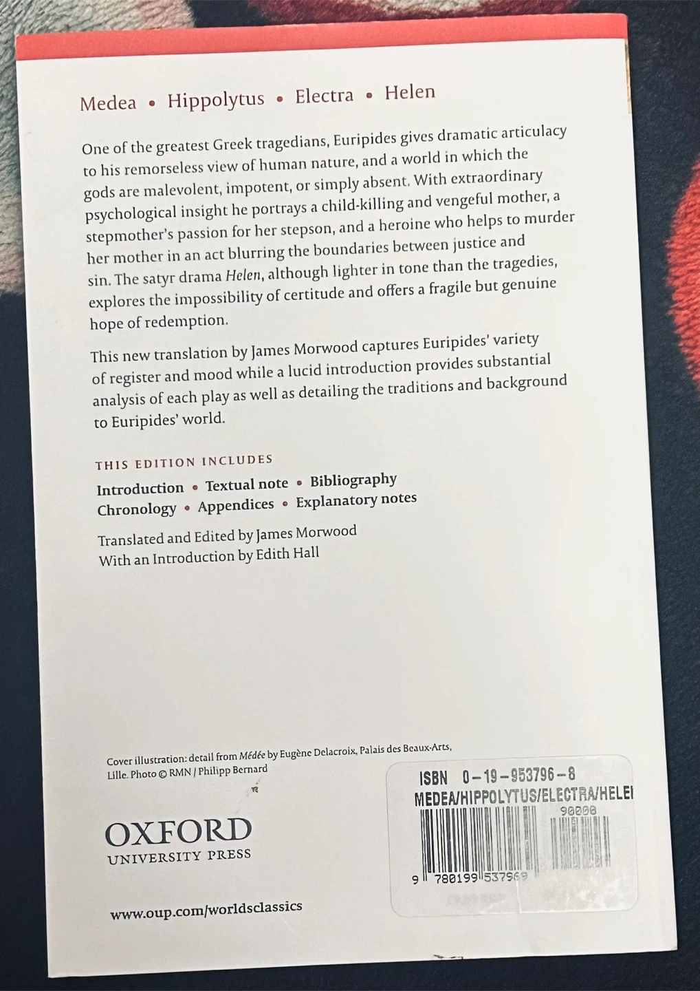 Selling Euripides' "Medea and Other Plays", part of the Oxford World's Classics series. Translated and edited by James Morwood, with an introduction by Edith Hall