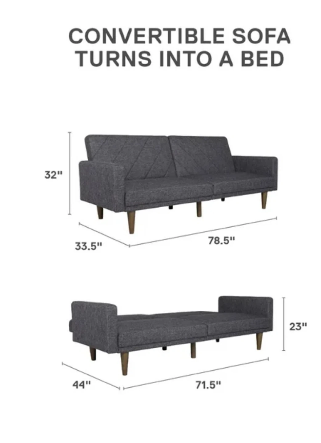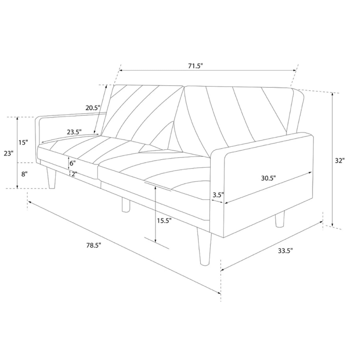 - Sitting: 78.5in (W) x 33.5in (D) x 32in (H)