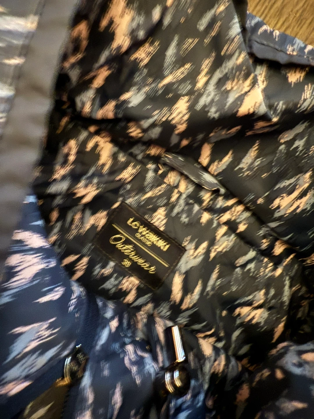 Selling a Lowinski Classic outerwear piece in size 38. It features a unique pattern and a comfortable fit. Perfect for layering during cooler weather!