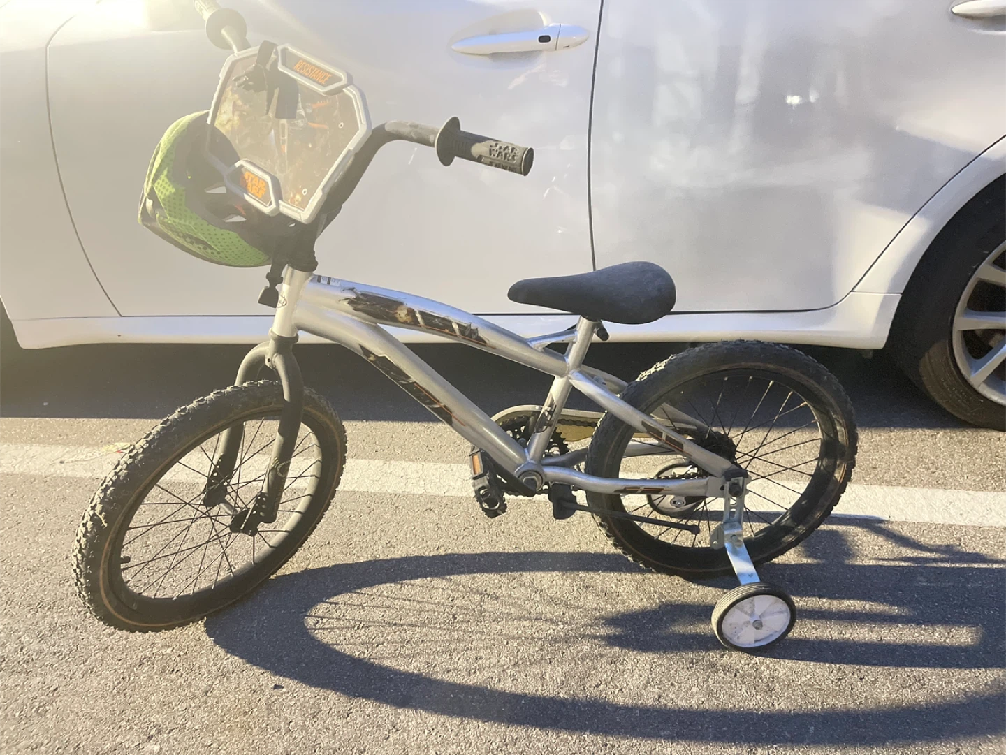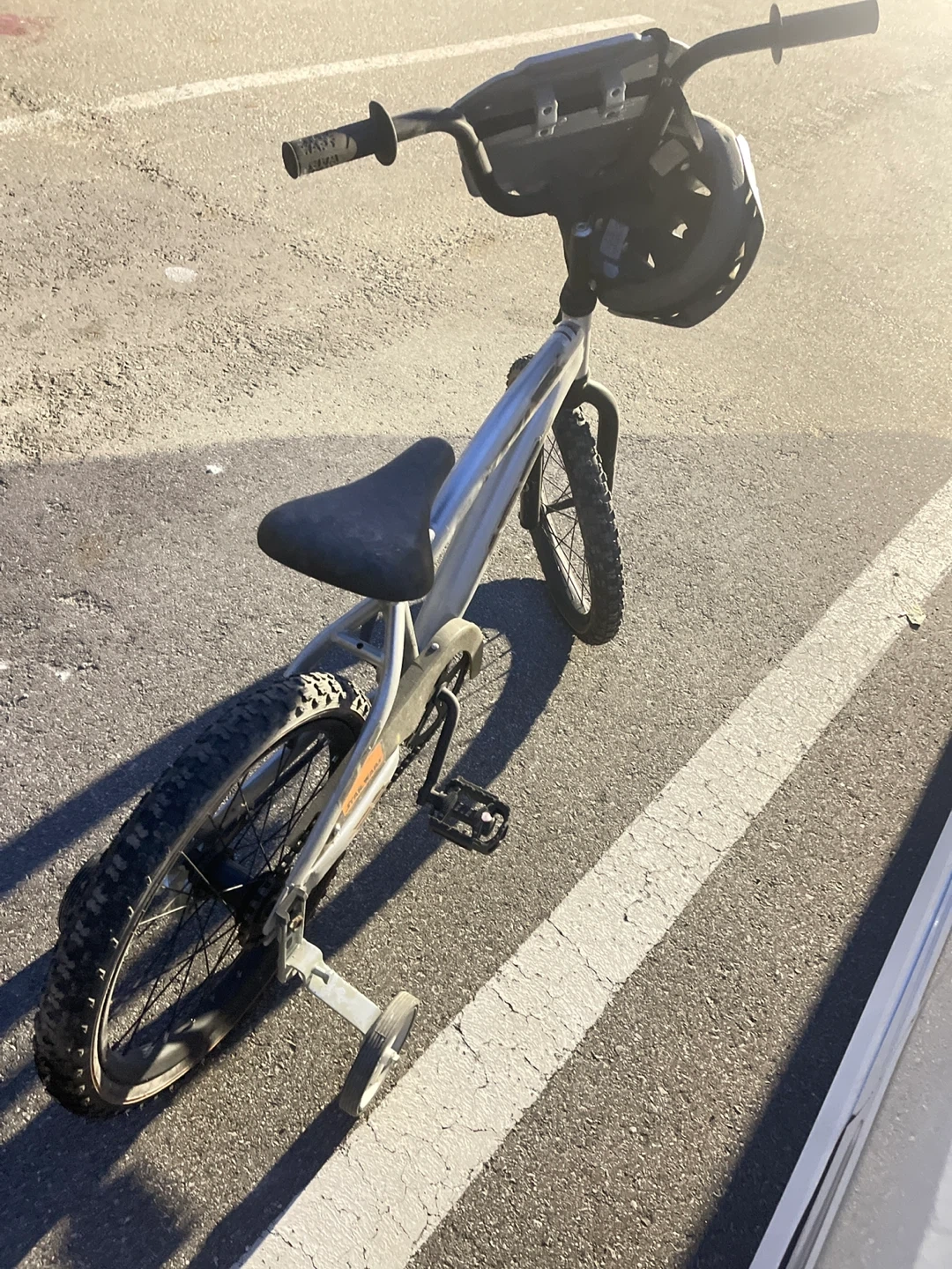 Selling a kids' bike that's perfect for learning! It comes with training wheels to help your little one get the hang of riding. The bike is silver and in good condition, ready for its next adventure around the neighbourhood