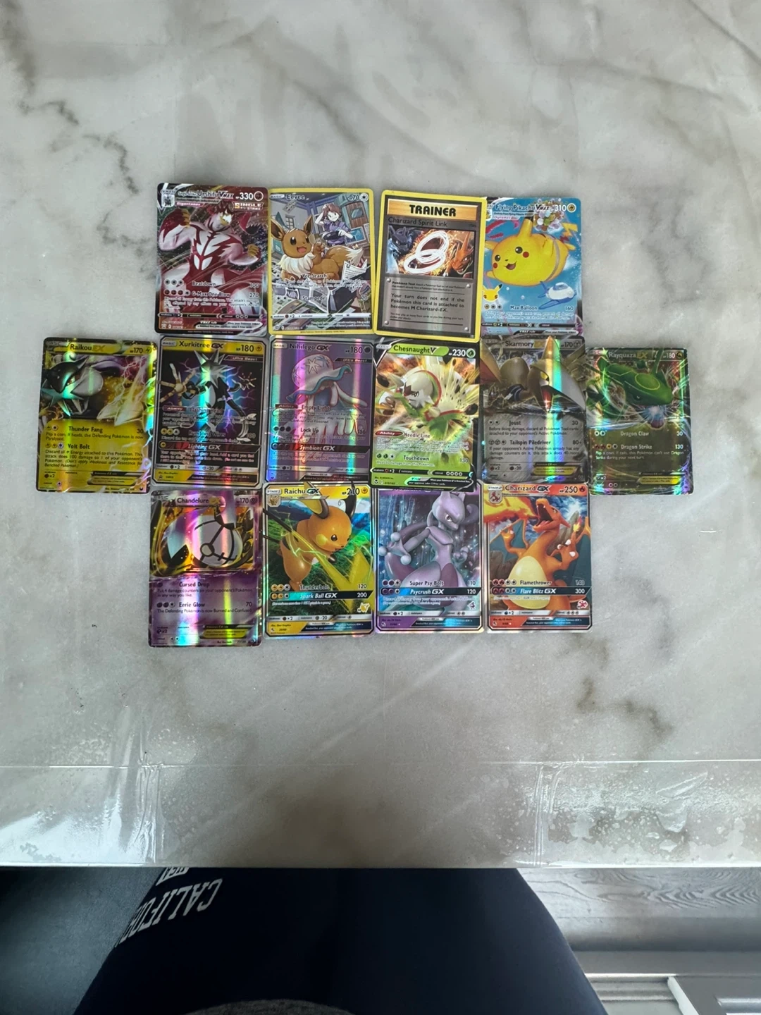 Selling a collection of Pokemon trading cards! Includes a variety of GX, EX, V, and VMAX cards. Great for collectors or players looking to expand their collection