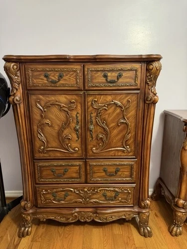 The Victoria Brown Dresser for TV is a stylish and functional piece of furniture for your bedroom. This rectangular dresser features a classic brown color and is made of wood, lasting for years to come. With 6 drawers and a sliding door mechanism, it offers ample storage space while maintaining a sleek design. The easy-care instructions make it convenient for everyday maintenance, and the free-standing mounting allows for easy placement in your bedroom. This dresser is a practical and timeless addition to your home.