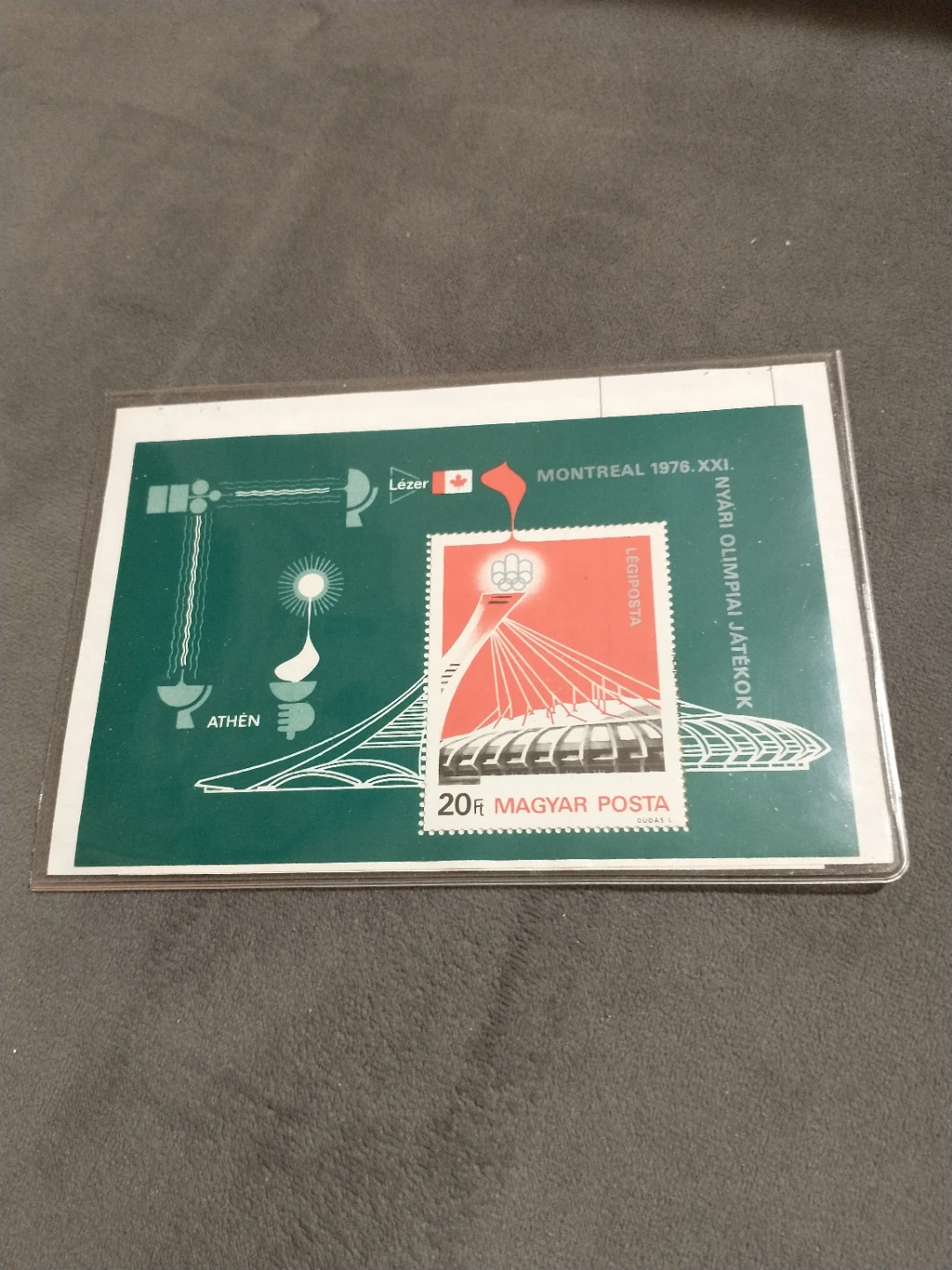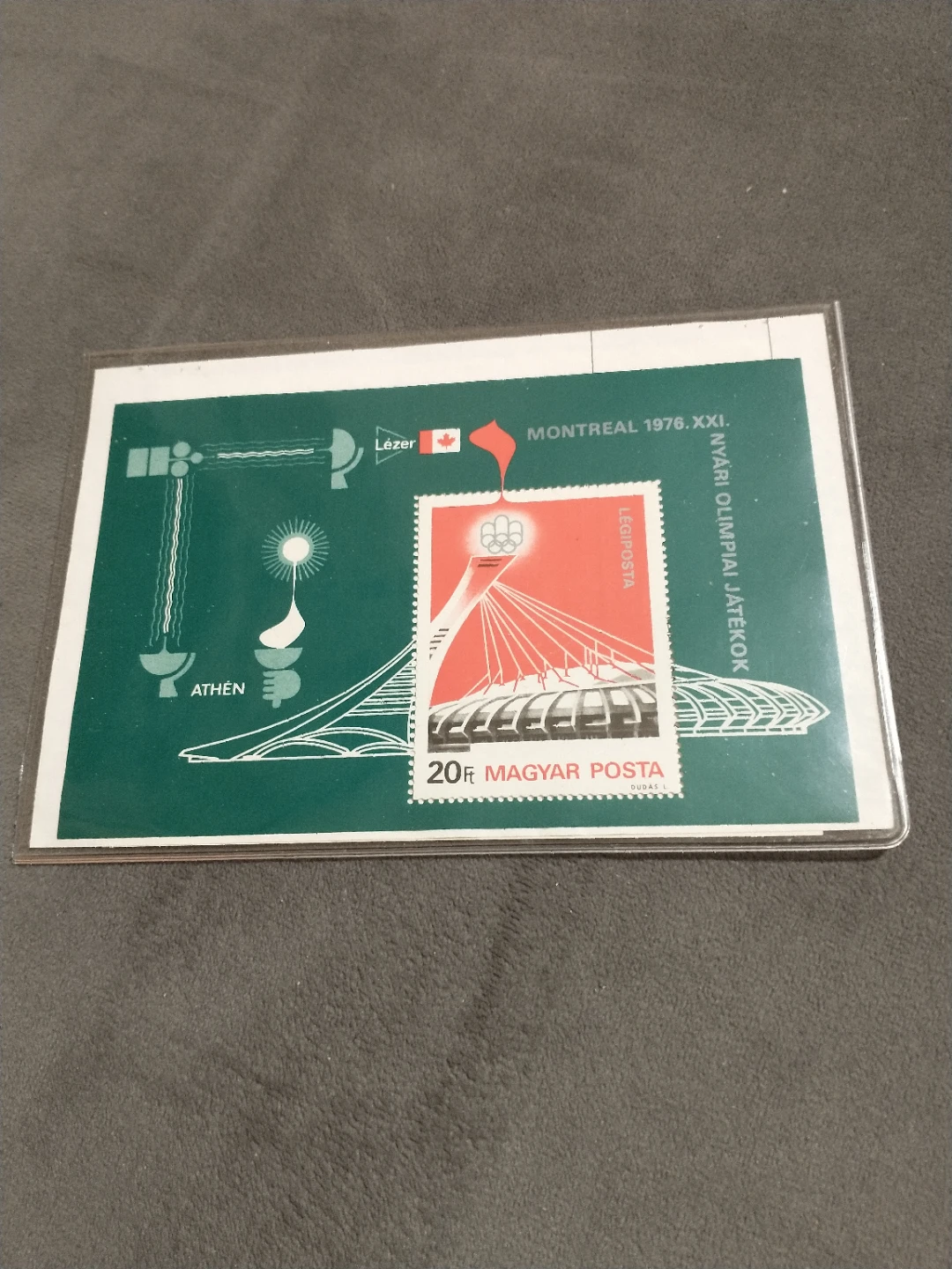 Selling a commemorative stamp from the Montreal 1976 Summer Olympics! It features a unique design with the Olympic rings and Canadian flag.