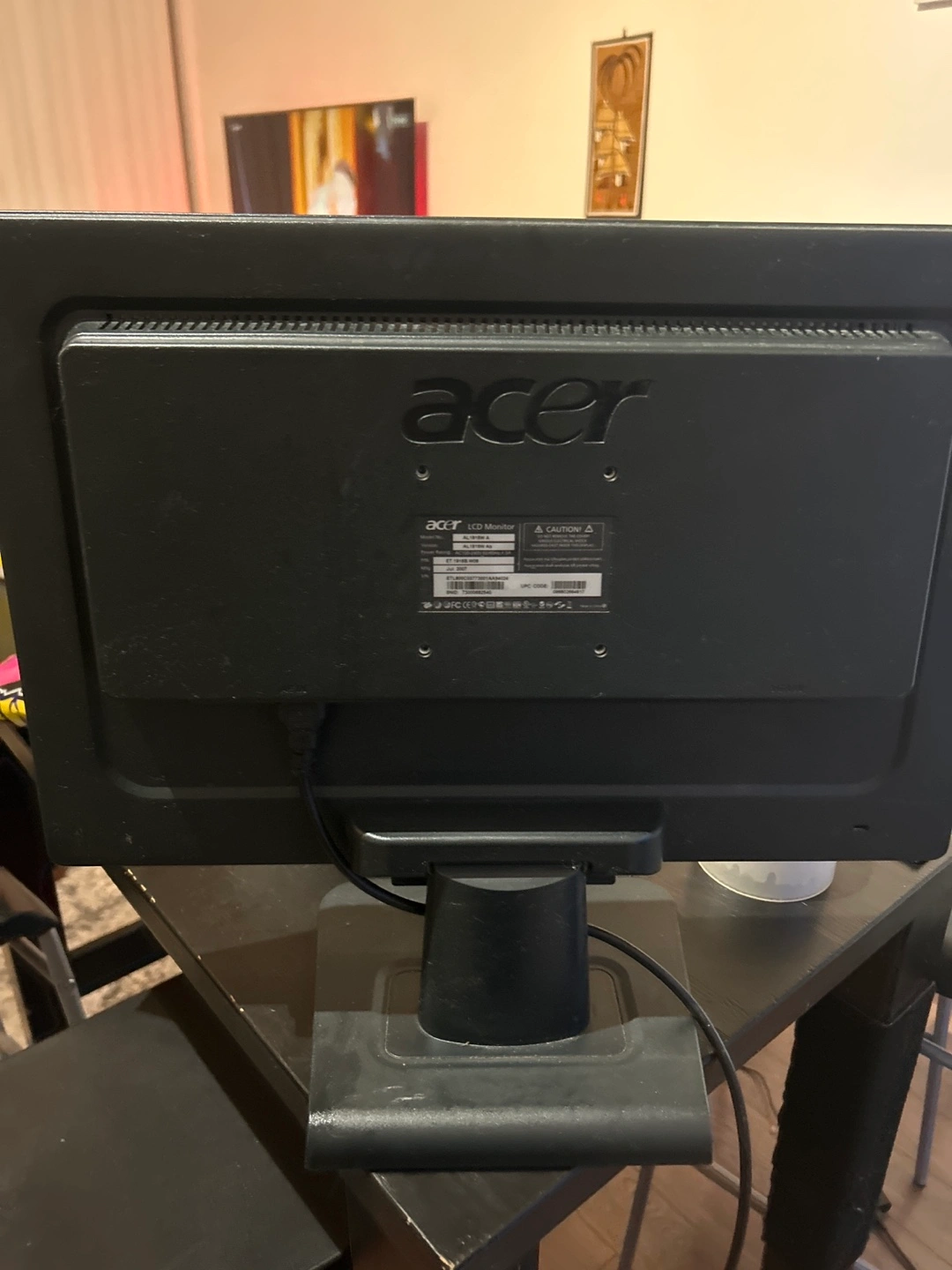 Selling an Acer 19in LCD monitor. It It's in good working condition and would be great as a secondary display or for basic computer tasks.