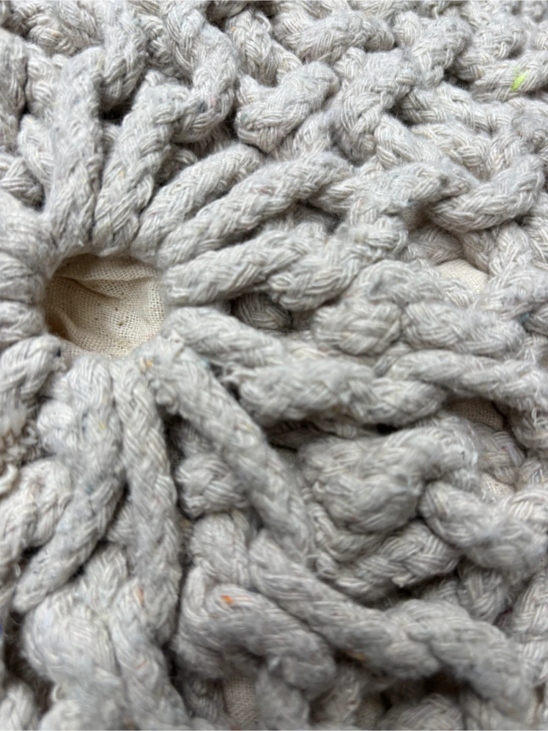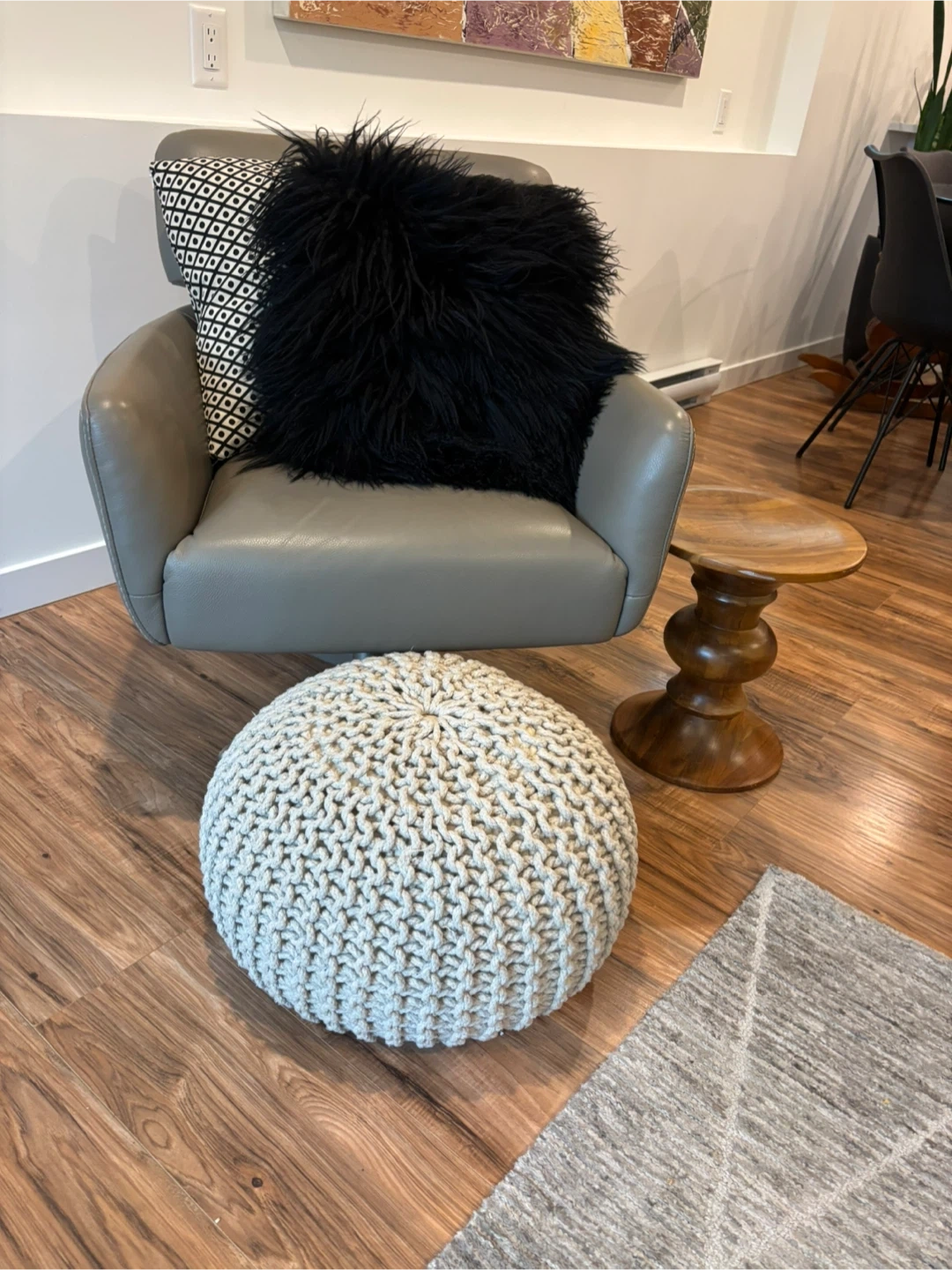 Selling a hand-knitted round floor pouf. It's in great condition and would be a cozy addition to any room. Perfect as extra seating or a footrest! COTTON