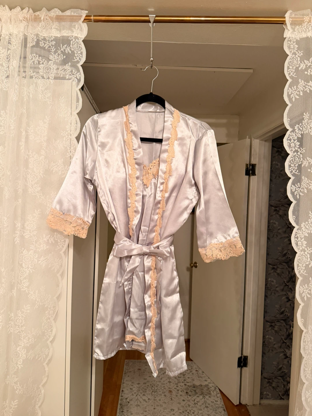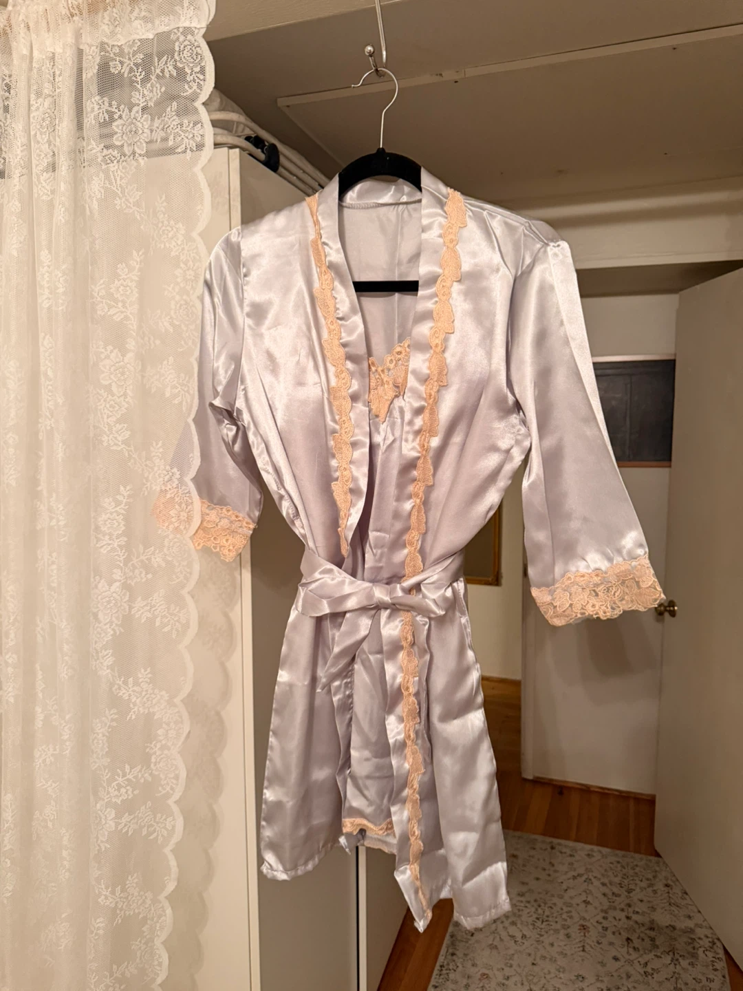 1 / 61 / 6Buy & SellLace Trimmed Satin Lingerie SetLace Trimmed Satin Lingerie Set$10Selling a beautiful satin lingerie set with lace trim. Includes a robe, camisole, and pants. Ordered wrong size. Never wornConditionNewSizeSmall WHERE TO MEETKerrisdaleView MapSELLERverifiedKristaKerrisdale45632 reviews0 chats·0 favorites·6 viewsSEND CHAT TO SELLERHi Krista! I’m interested in your listing.Hi Krista! I’m interested in your listing.Get the Karrot app to chatSign In to chat